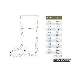 Gumowe buty z trwałą i stabilną podeszwą pozwolą na komfortowe brodzenie w różnych warunkach. W zestawie znajdują się również wypustki na pięcie ułatwiające zdejmowanie.