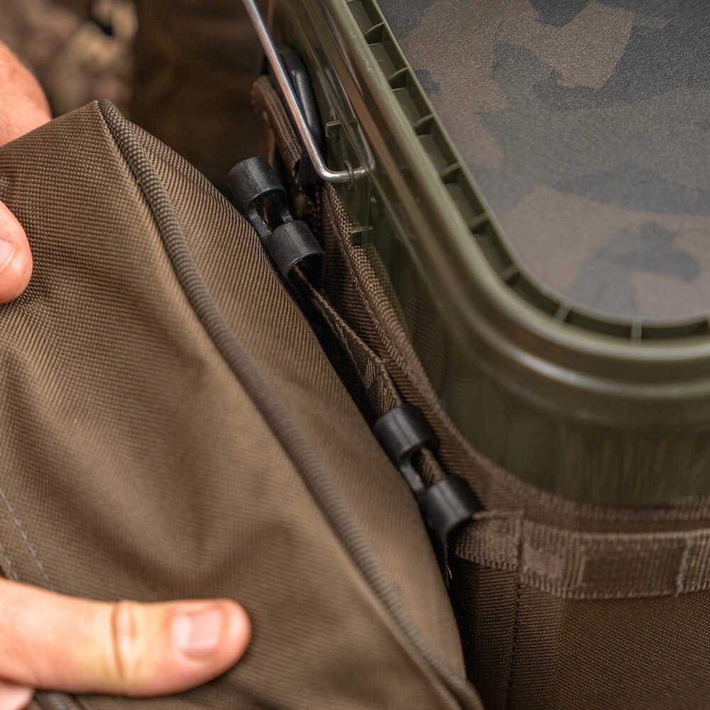 Compound Bucket and Pouch Caddy pomieści zarówno wiadra o pojemności 10 lub 17 litrów, jak i 4 małe sakwy Compound. Jest bardzo uniwersalna, może zostać wykorzystana w wielu sytuacjach: podczas krótkiej zasiadki, stalkingu, a także łowienia przy powierzchni.