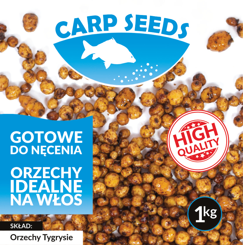 Produkt na wielkie ryby. Karpie i amury na prawdę to uwielbiają. Orzechy tygrysie Carp Seeds pomogły pobić PB wielu wędkarzy. Jednym słowem – zanęć, załóż na włos i złów swój rekord.