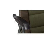Niesamowicie wygodny fotel wyposażony w regulowane nóżki z dużymi stópkami, podłokietniki, składane oparcie i komfortowy materac z polarowym wykończeniem. Odpowiednie rozmiary oparcia zapewniają komfort podczas wielodniowych zasiadek, nawet wyższym osobom.
