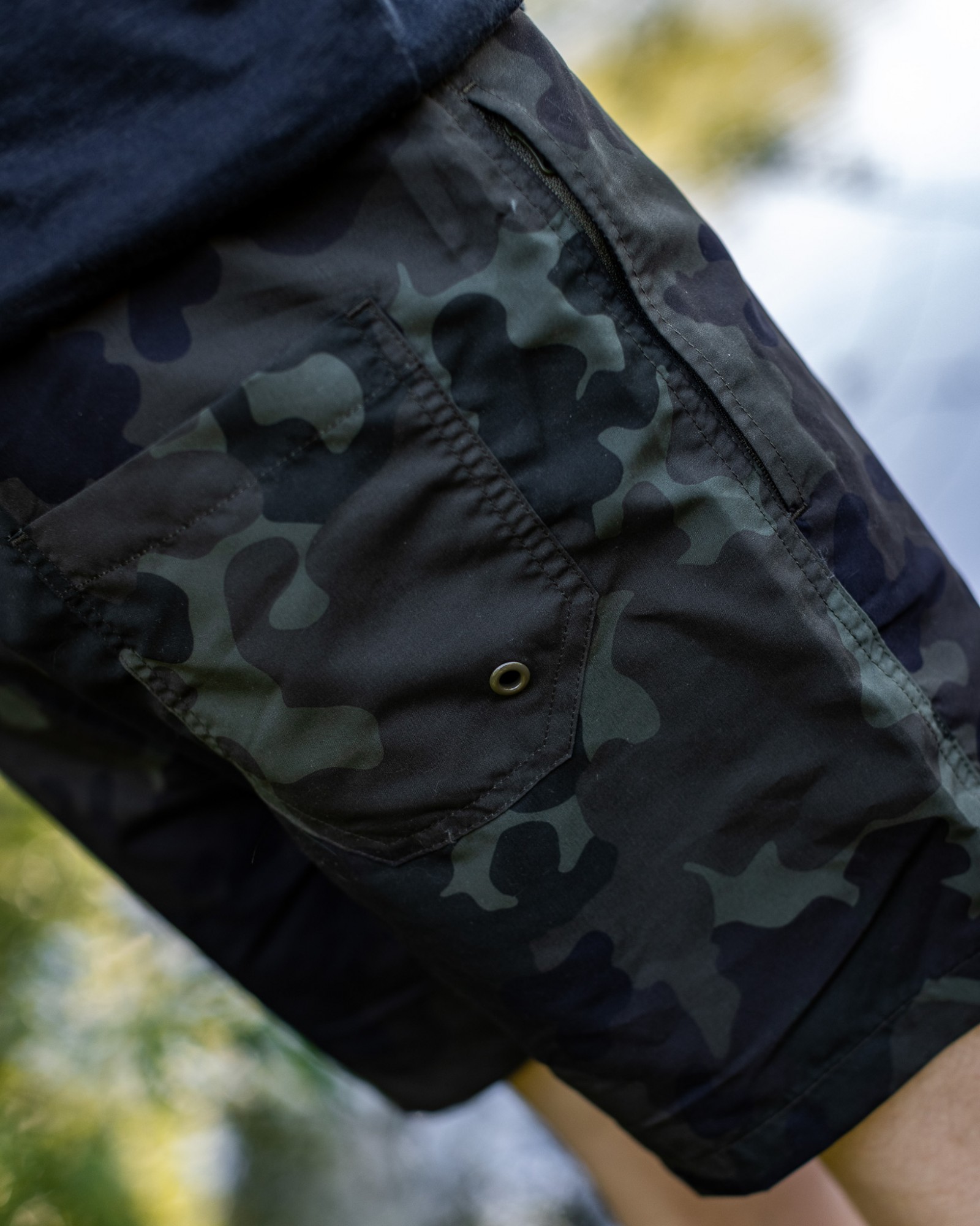 Wewnętrzna siateczkowa warstwa pozwala na noszenie ich bez bielizny, co umożliwia szybkie wysychanie na słońcu. Posiadają elastyczny pas z zapięciem na napę i zamkiem błyskawicznym oraz sznurek do dodatkowego dopasowania przy wejściu do wody. Oferują miejsce do przechowywania w dwóch kieszeniach bocznych na zamek, jednej tylnej – wszystkie zaprojektowane tak, aby woda mogła szybko odpływać, oraz w małej wewnętrznej kieszeni.