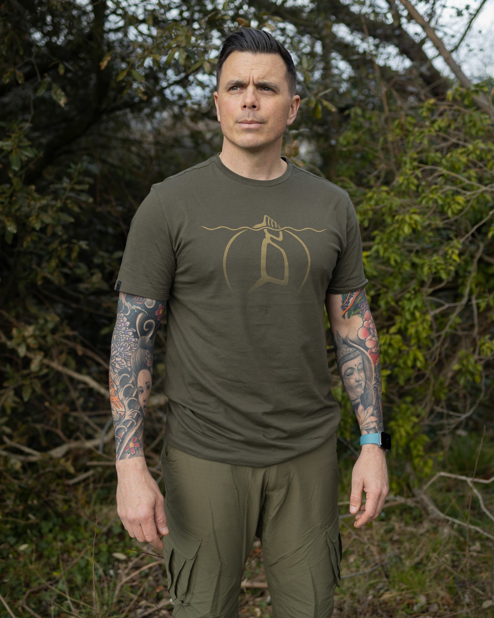 Submerged Tee to koszulka w kolorze oliwkowej zieleni, wykonana z materiału o wykończeniu peach skin, nadającym jej miękką, aksamitną fakturę, bardzo przyjemną w dotyku. Doskonała na lato lub jako jedna z warstw w chłodniejsze dni.