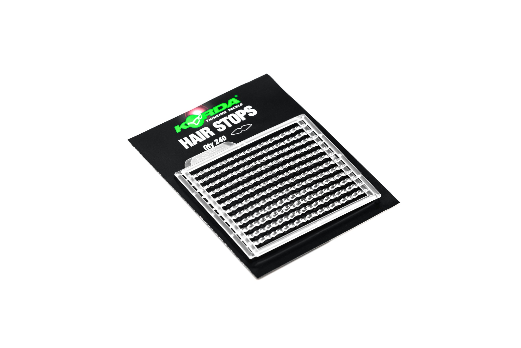 Te wielokrotnego użytku, przezroczyste stopery Hair Stops mogą być stosowane praktycznie z każdym rodzajem przynęty i dyskretnie utrzymują ją na włosie. Są bardzo łatwe w użyciu – dostarczane w paskach umieszczonych w ramce, dzięki czemu można odłamywać je pojedynczo, bez ryzyka zgubienia pozostałych.