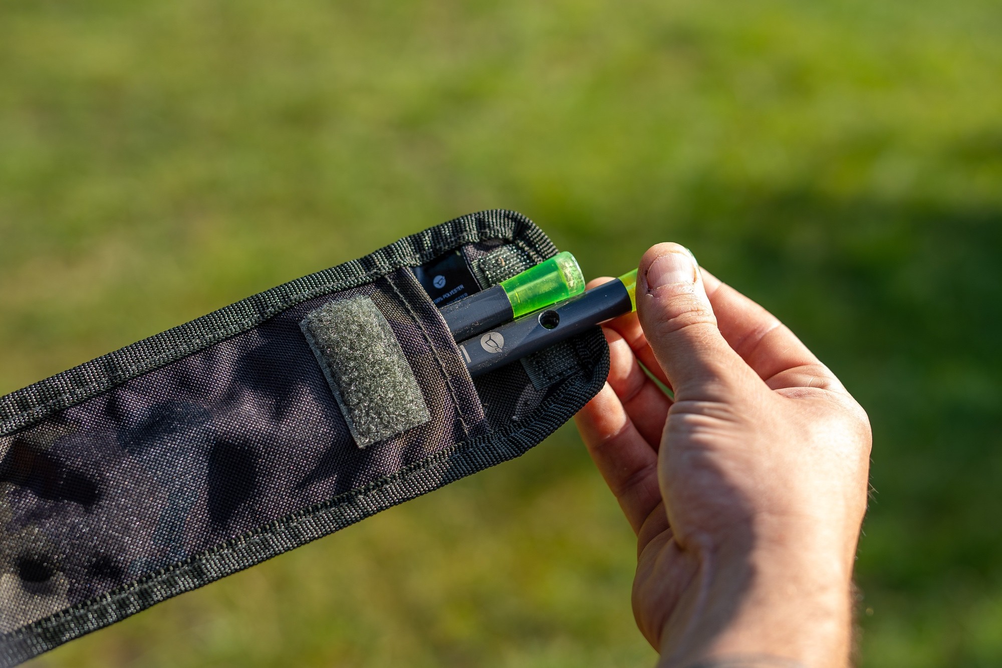 W głównej komorze Korda Compac Distance Stick Bag Dark Kamo bez problemu mieszczą się dwa distance sticki. Dodatkowa kieszeń wewnętrzna została przeznaczona na T-bar służący do wkręcania tyczek w grunt, natomiast kieszeń zewnętrzna idealnie nadaje się do przechowywania linki pomiarowej. Takie rozwiązanie pozwala zachować pełną organizację i szybki dostęp do wszystkich elementów potrzebnych do precyzyjnego odmierzania dystansu rzutów.