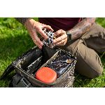 Torba posiada również dwie zewnętrzne kieszenie zapinane na zamek, z których jedna bez problemu pomieści kartusz gazowy w rozmiarze 500 wraz z palnikiem. Wykonana z lekkiego, a jednocześnie bardzo wytrzymałego i wodoodpornego materiału Dark Kamo, torba świetnie znosi intensywne użytkowanie w warunkach biwakowych. Wzmocnione, nieprzemakalne dno chroni zawartość przed wilgocią, a łatwa do czyszczenia wyściółka ułatwia utrzymanie porządku.