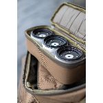 Pokrowiec mieści do trzech zapasowych szpul, które są stabilnie zabezpieczone dzięki odpowiednio rozmieszczonemu wypełnieniu, miękkiej wyściółce oraz usztywnionym ściankom. Taka konstrukcja skutecznie chroni krawędzie szpul i nawiniętą linkę przed uszkodzeniami mechanicznymi, odkształceniem oraz uderzeniami w transporcie. Korda Compac Spool Case Narrow jest kompatybilny z popularnymi szpulami typu big pit 45 mm, co czyni go uniwersalnym rozwiązaniem dla większości karpiowych zestawów.