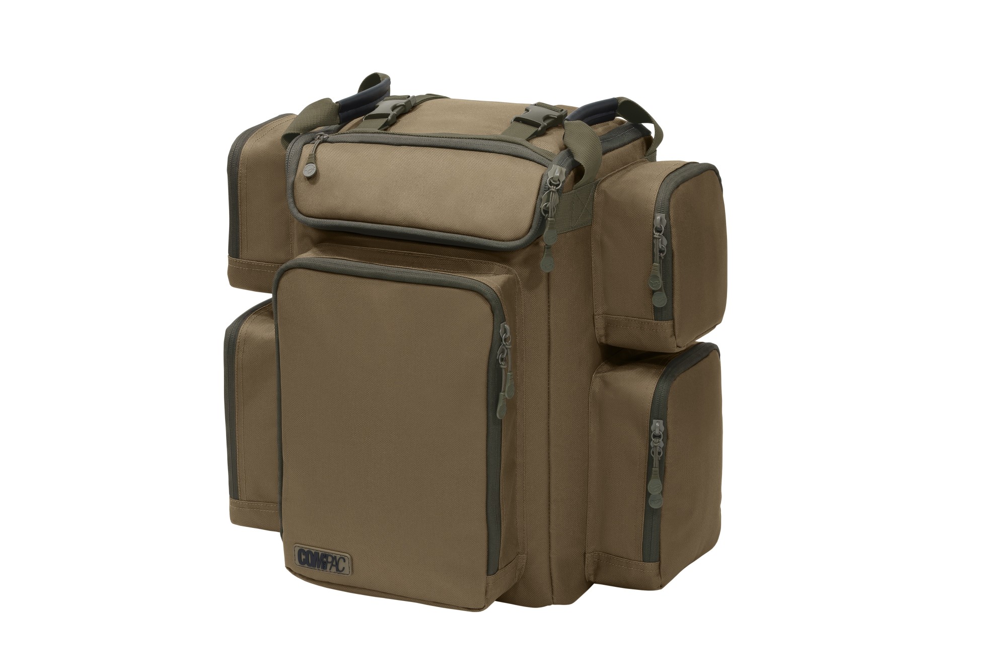 Korda Compac Rucksack 45 l to wygodny i pojemny plecak karpiowy dla wędkarzy, którzy nadal przenoszą sprzęt na plecach zamiast korzystać z taczki lub po prostu wolą plecak od klasycznej torby typu carryall. Konstrukcja została zaprojektowana tak, aby pomieścić dużo wyposażenia, a jednocześnie pozostać komfortowa w noszeniu nawet podczas dłuższych dojść na stanowisko.