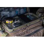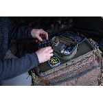 Na zewnątrz torba posiada pięć kieszeni — cztery z nich zostały zaprojektowane tak, aby idealnie współpracować z pokrowcami EVA Compac 100, 110, 125 oraz 140. Przednia kieszeń pomieści pudełko Korda Tackle Box, co pozwala lepiej wykorzystać przestrzeń głównej komory. W zestawie znajdują się dwa wewnętrzne organizery, które można dowolnie konfigurować. Boczne kieszenie wyposażono w przelotki ułatwiające dostęp do przewodów ładowania.