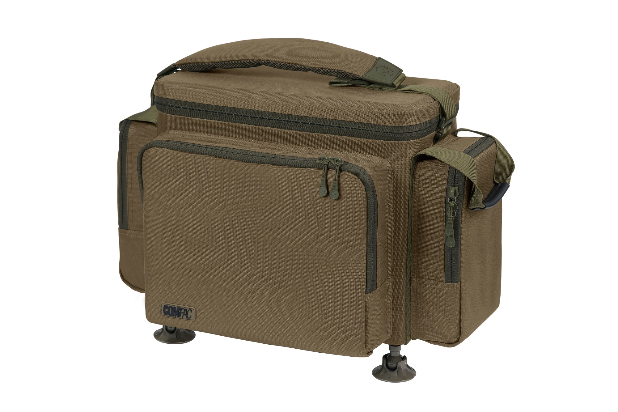 Torba Korda Compac Small Framed Carryall to mniejsza z dwóch dostępnych wersji, o pojemności wewnętrznej 25 litrów i z licznymi możliwościami organizacji ekwipunku wewnątrz oraz na zewnątrz. Konstrukcja oparta jest na malowanej proszkowo aluminiowej ramie, co zapewnia wysoką sztywność i wytrzymałość.