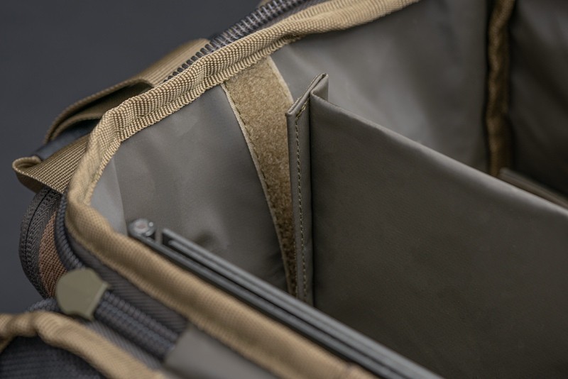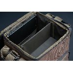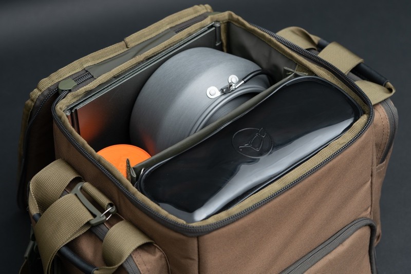 W głównej komorze znajduje się dużo miejsca na większe elementy wyposażenia, takie jak czajnik, naczynia czy zestaw Korda Compac Tea Set. Wnętrze można łatwo uporządkować dzięki sztywnej, regulowanej przegrodzie, którą w razie potrzeby można wyjąć. Dodatkowe kieszenie wewnętrzne na zamek świetnie nadają się do przechowywania drobnych rzeczy, np. łyżeczek, zapalniczki czy małych dodatków.