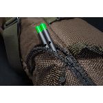 Z boku znajduje się praktyczna kieszeń na ciężarki, w której można przechować ołów po zakończeniu zasiadki. Dodatkowo na grzbiecie pokrowca umieszczono kieszeń na podbierak oraz bankstick, co ułatwia przenoszenie najważniejszych akcesoriów w jednym miejscu.