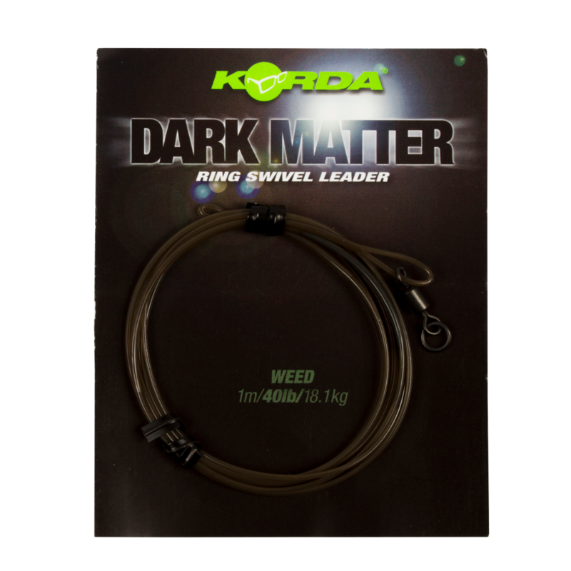 Przypony Dark Matter są praktycznie niezniszczalne. Rdzeń z wytrzymałej żyłki monofilamentowej w połączeniu z poliuretanową powłoką zapewnia im bardzo wysoką odporność na przetarcia. Pod wodą pozostają niemal niewidoczne, zgodnie z zasadą „Safe Zone” — im mniej widoczny jest zestaw końcowy, tym większa szansa na brania. Wbudowane sekcje z wolframu dociążają przypon i pomagają utrzymać go przy dnie. Seria dostępna jest w trzech wariantach: z krętlikiem typu ring swivel w rozmiarze 8, w wersji Hybrid Lead Clip oraz w konfiguracji Heli/Chod.