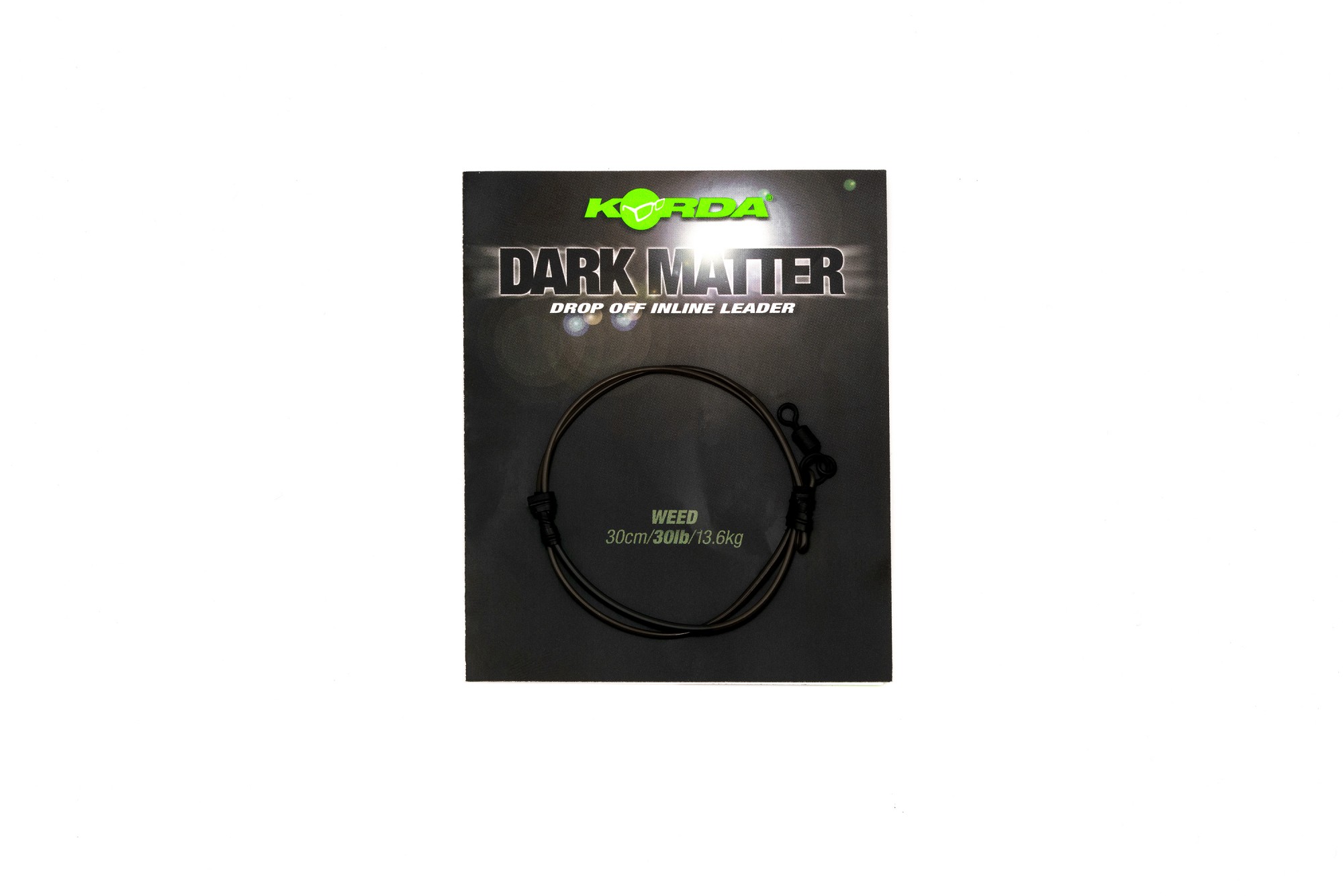 Korda Dark Matter Drop Off Inline Leader w kolorze Weed, o wytrzymałości 30 lb i długości 30 cm, został zaprojektowany do stosowania z ciężarkami typu drop-off inline. Fuzowany odcinek materiału jest połączony z jednym oczkiem krętlika z kółkiem w rozmiarze 8, co pozwala skutecznie wykorzystywać ten rodzaj zestawu. Wtopione pierścienie wolframowe sprawiają, że leader stabilnie przylega do dna i pomaga ograniczyć płoszenie ryb.