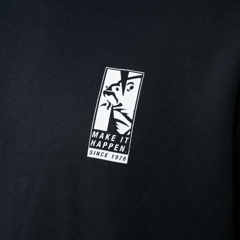 Czarna wersja bluzy bez kaptura, stworzona dla tych, którzy preferują klasyczny styl. Wykończona eleganckim, wypukłym silikonowym nadrukiem na piersi z motywem Since 1978. Dostępna w rozmiarach od S do XXXL.