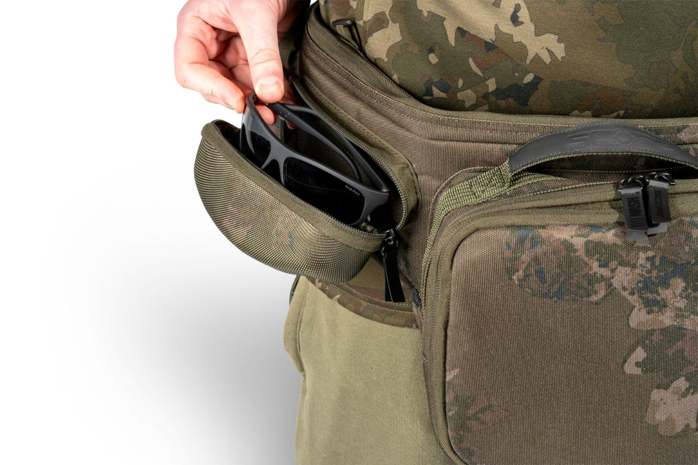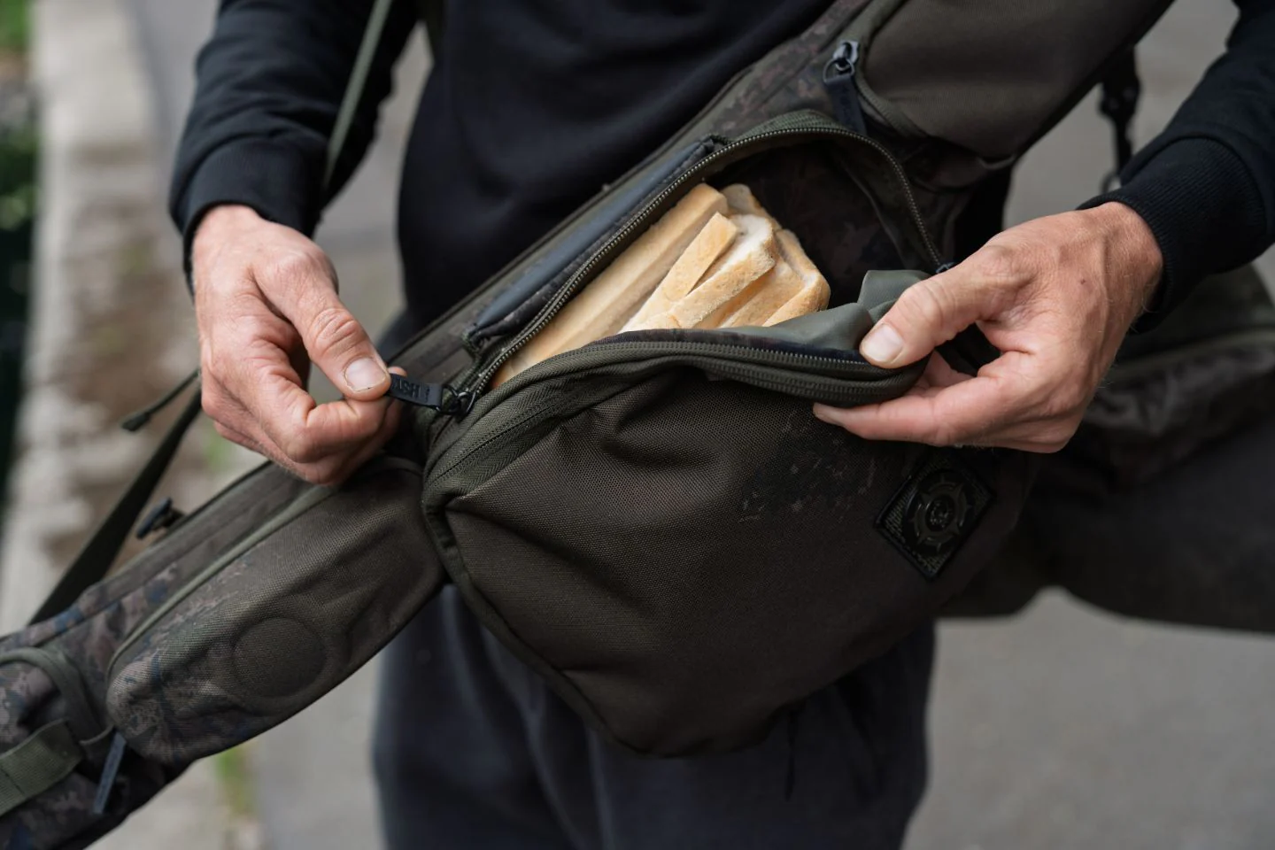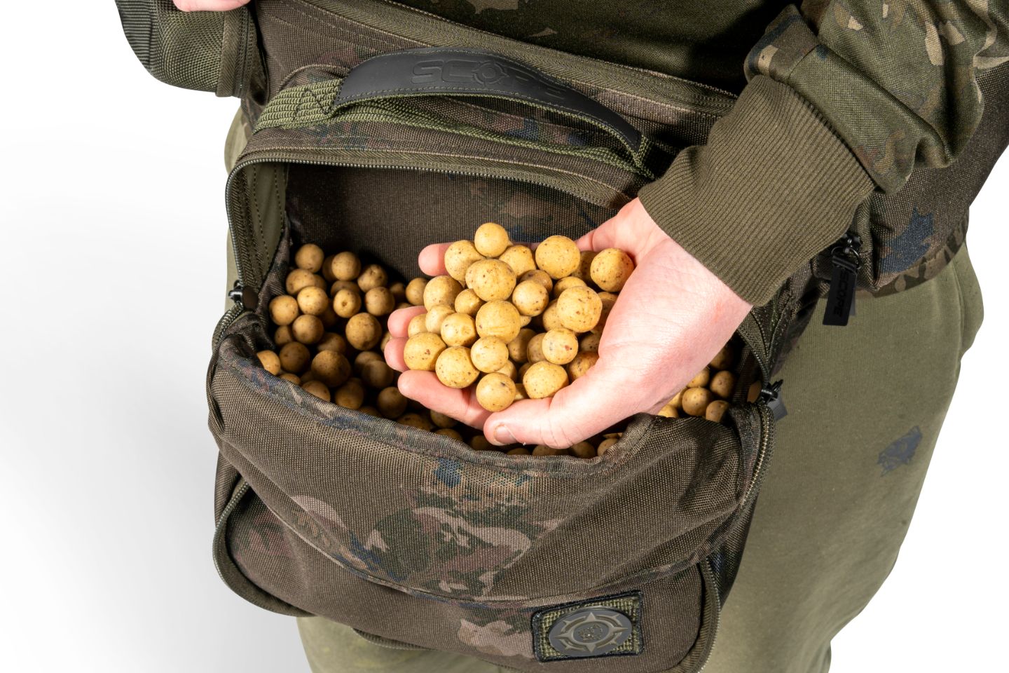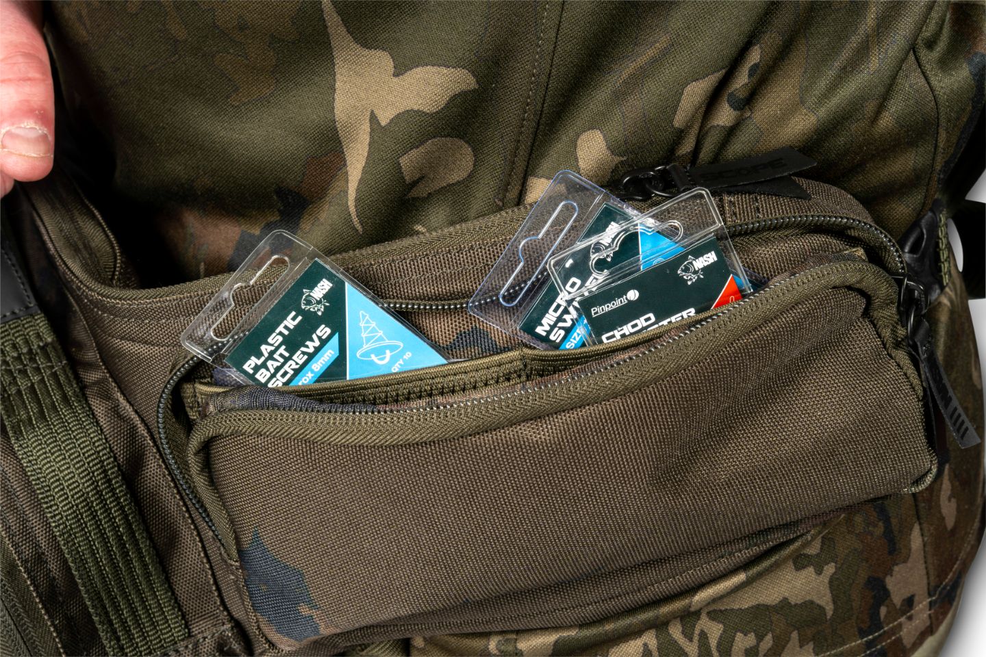- Powiększona kieszen na większe elementy sprzętu lub służąca również jako przegroda na przynętę – idealna na floatersy, mieszanki zanętowe lub kulki proteinowe
