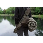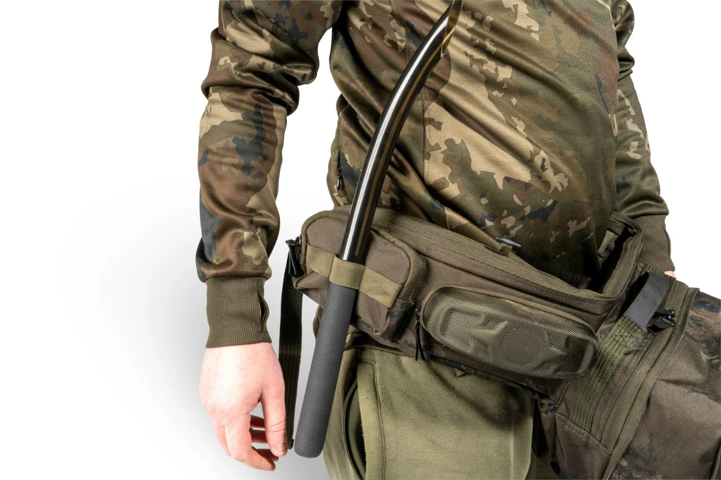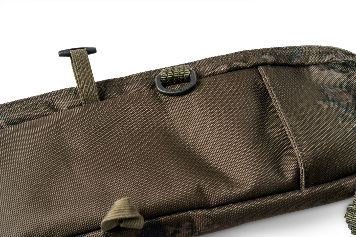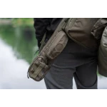 - Podwójne zewnętrzne elastyczne pętle i suwaki pozwalające przenosić kompaktowy podbierak, podpórki z sygnalizatorami lub kije do odmierzania rzutów