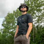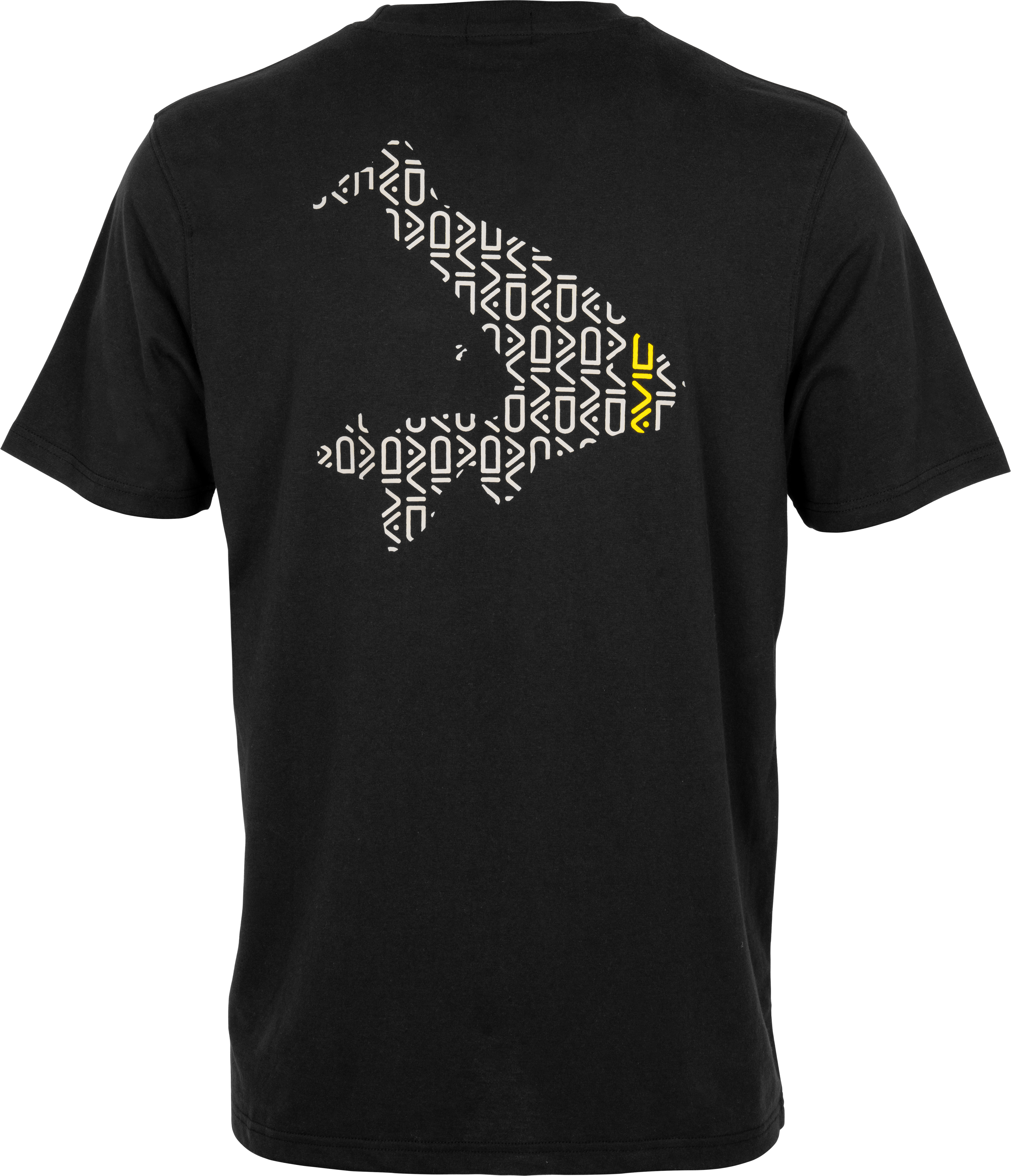 Czarna bawełniana koszulka z dużym nadrukiem 3D Avid z tyłu w kształcie rybich głów