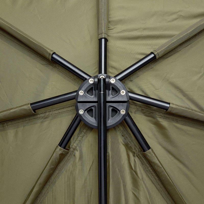 Rozmiar 100 został zaprojektowany tak, aby zapewnić idealny kompromis pomiędzy kompaktową podstawą a wygodną przestrzenią w środku. Namiot bez problemu mieści duże łóżko karpiowe oraz dodatkowy sprzęt, a jednocześnie jego footprint jest na tyle praktyczny, że pasuje do większości łowisk i ograniczonych miejscówek.