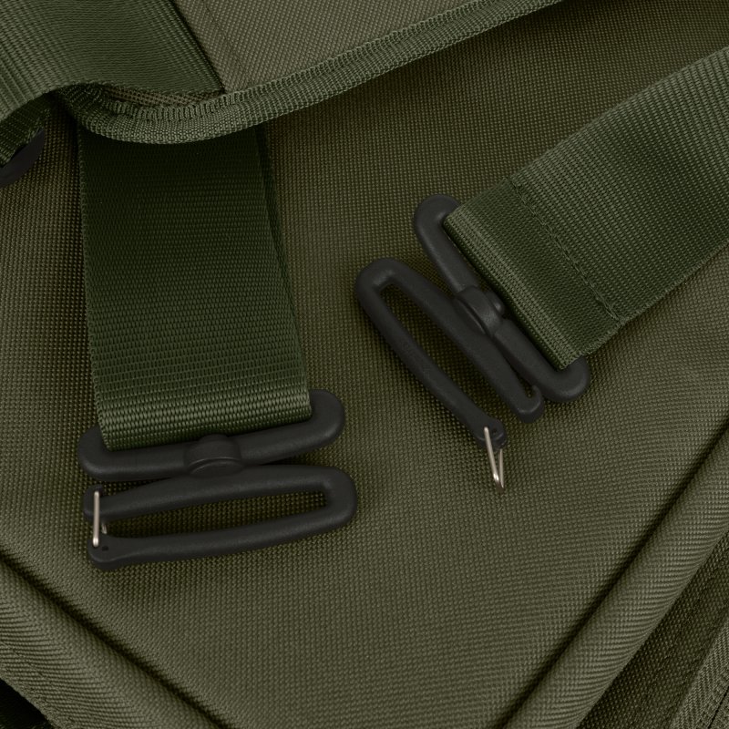 Torba wykonana jest z wytrzymałego materiału n-dura, posiada wodoodporne dno z PVC, a jej transport ułatwiają uchwyty do noszenia, boczne rączki załadunkowe oraz odpinany, regulowany pasek na ramię z wyściółką.