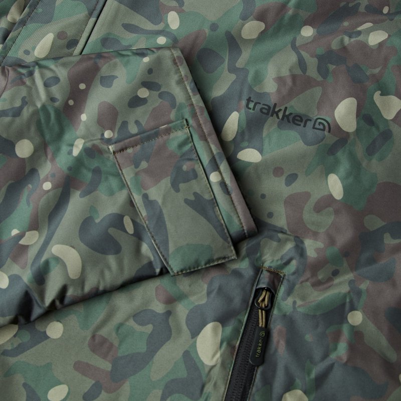 Trakker CR Camo Robe została wykonana z bardzo wodoodpornego materiału o parametrach 5 000 mm słupa wody, z w pełni podklejonymi szwami, co gwarantuje maksymalną ochronę przed niekorzystnymi warunkami pogodowymi. Zapinane na zamek, polarowe kieszenie do ogrzewania dłoni oraz wyjątkowo gruba podszewka z futra sherpa zapewniają doskonałą izolację termiczną. Kaptur wyściełany futrem sherpa oferuje dodatkowe ciepło i ochronę, a regulowane mankiety zapewniają idealne dopasowanie i komfort.