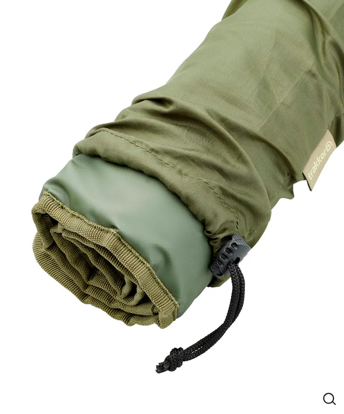 Izolowana mata bivvy Trakker jest dostarczana z pokrowcem ze ściągaczem ułatwiającym transport i przechowywanie oraz z czterema małymi śledziami, które umożliwiają jej przymocowanie do podłoża.
