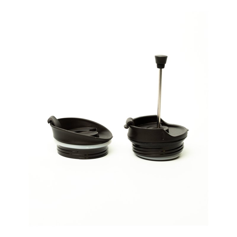 W zestawie dwa wieczka: tłokowe oraz antyrozlewowe z zamykanym otworem