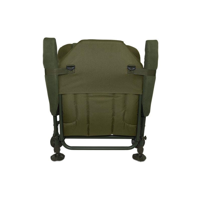 Ergonomiczna, rozkładana wersja krzesła Trakker Levelite Longback, model Trakker Levelite Longback Recliner zachowuje wszystkie doskonałe cechy wersji Longback, oferując dodatkowo funkcję odchylania oparcia. Aby rozłożyć krzesło, wystarczy unieść luksusowe podłokietniki pokryte polarem, przesunąć się do tyłu do pożądanej pozycji odchylenia, a następnie opuścić podłokietniki, które zablokują ustawienie — to naprawdę proste! Cztery w pełni regulowane, jednoprzyciskowe stopki błotne umożliwiają ustawienie krzesła na optymalnej wysokości i w idealnej pozycji. Przy wadze zaledwie 5,3 kg krzesło jest wyjątkowo lekkie, biorąc pod uwagę jego rozmiar, komfort i funkcjonalność.