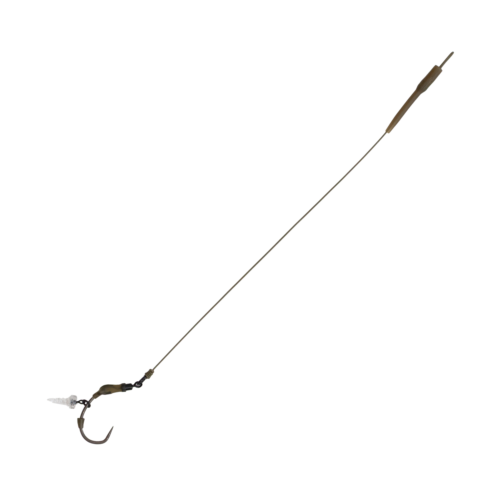 Zestaw został wykonany z 25-funtowego, półsztywnego, powlekanego włosa (Semi-Stiff Coated Braid), który zapewnia idealną równowagę między sztywnością a elastycznością — utrzymując hak w optymalnej pozycji, a jednocześnie pozwalając na naturalną prezentację przynęty. Mała osłonka przeciwplątaniowa (Small Anti-Tangle Sleeve) gwarantuje, że zestaw poprawnie ułoży się na dnie po zarzuceniu, minimalizując splątania.