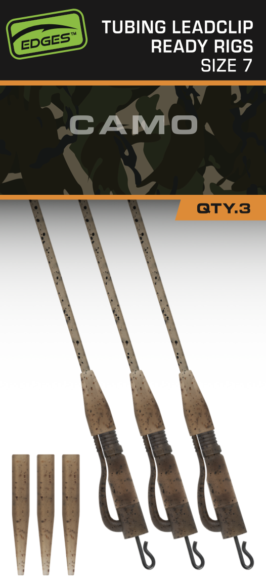 Gotowy zestaw Fox Edges z rurką antysplątaniową i klipsem do ciężarka kolor Camo