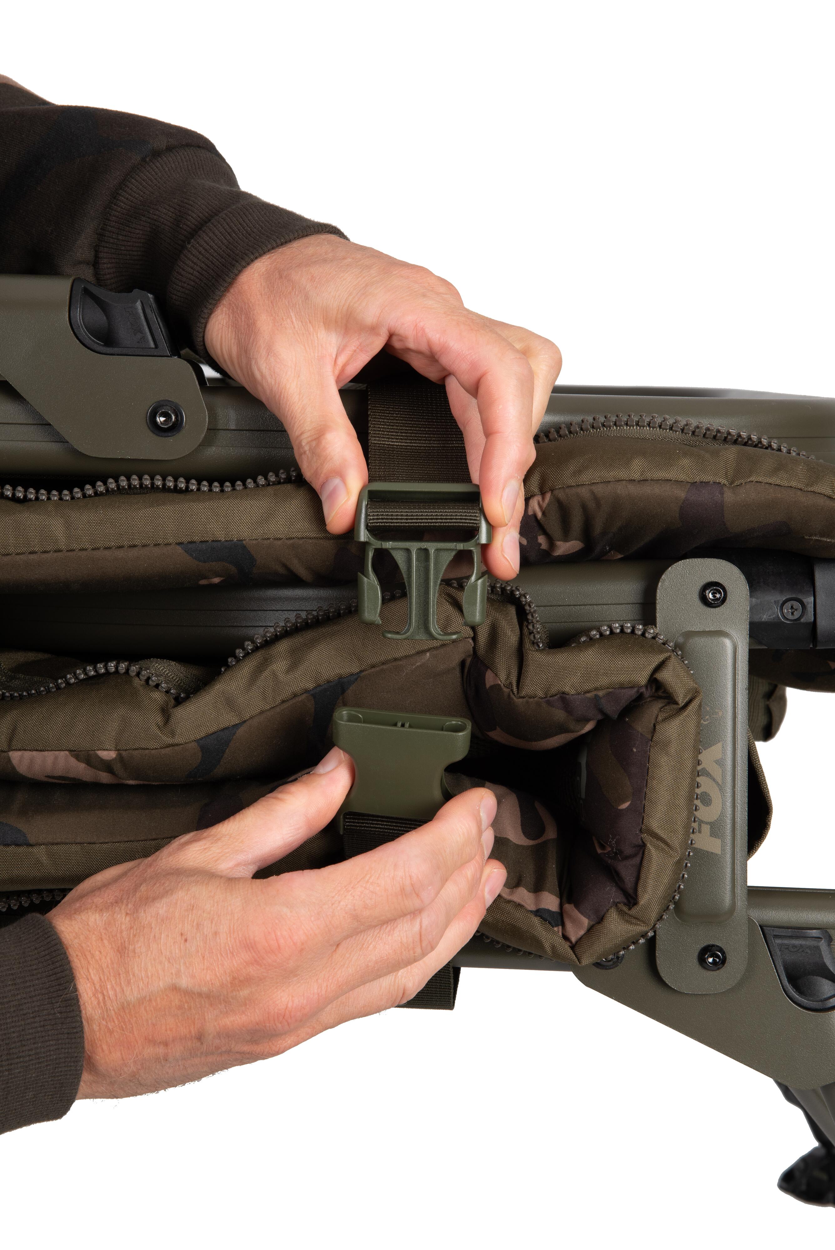 Duralite Bedchair Sleep System to wysokiej jakości konstrukcja all-in-one, która składa się z lekkiego łóżka oraz wszechstronnego śpiwora dla zapewnienia wygody przez cały rok. System dostępny w dwóch wielkościach - Duralite i Duralite+ - ma płaską ramę Duralite na 6 nogach z pełnym wsparciem odcinka lędźwiowego oraz dwuwarstwowy materac 30 mm dla optymalnego komfortu. Wpinany śpiwór Ventec All Season Sleeping Bag można łatwo przekształcić z wersji 5-sezonowej w wersję 3-sezonową poprzez wyjęcie dwustronnej, ocieplanej wkładki. Łóżko zaprojektowane z myślą o wygodzie można zgrabnie złożyć wraz z przymocowanym śpiworem, a innowacyjny system nóg zapewnia maksymalny komfort bez utraty niskiej wagi. Łóżko Duralite Bedchair jest doskonałe dla wędkarzy, którzy szukają wygody, wytrzymałości i wszechstronności, gdyż zapewnia komfort o każdej porze roku.• Kompletnym system do spania all-in-one składa się z lekkiego łóżka i wszechstronnego śpiwora Ventec All Season Sleeping Bag.• Dostępne w dwóch wielkościach Duralite (207 cm x 79 cm x 34.5-43.5 cm) i Duralite+ (212 cm x 87 cm x 34.5-43.5 cm), zapewnia wybór w zależności od różnych wymagań.• Rama Duralite na 6 nogach z dużymi, podwójnymi zawiasami zapewnia sztywność materaca na całej długości i łatwo składa się z przymocowanym śpiworem.• Pełne wsparcie odcinka lędźwiowego wzdłuż stref na głowę, środek i okolice stóp zapewnia stałą sztywność materaca i wygodę.• System nóg Maximum Support składa się z sześciu nóg (trzy zestawy podwójnych nóg) dla równego rozłożenia obciążenia i optymalnej stabilności. Pozwala to zachować zalety ramy na 6 nogach w oszczędzaniu wagi.• Szybka regulacja wysokości za pomocą wygodnego, jednoprzyciskowego mechanizmu sprężynowego na nogach.• Dwuwarstwowy materac 30 mm ma spód z bardzo gęstej pianki oraz miłej w dotyku, porowatej warstwy wierzchniej dla wygody.• Dwustronna wkładka ocieplająca pozwala na regulację ciepła podczas letnich lub zimowych warunków z możliwością wyboru podszewki z mikropolaru lub poliestru.• Wodoodporny materiał Ventec i wypełnienie z włókien 7 Core Hollow Fibre dla całorocznego użytkowanie i zatrzymania ciepła. Praktyczne funkcje obejmują cegiełkowy układ paneli, wytrzymałe zamki, zabezpieczenia przed zakleszczeniem zamka i mocowanie poduszki dla dodatkowej wygody.• Materiał śpiwora: Zewnętrzny/Podszycie/Wypełnienie - 100% poliester, Materiał materaca: Zewnętrzny – 100% poliester / Wypełnienie – 100% poliuretan