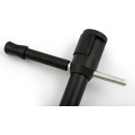 Do wkręcania banksticka w podłoże służy T-Bar, który jest sprytnie przechowywany wewnątrz banksticka. Aby go użyć, należy wyjąć wewnętrzną część i umieścić T-Bar w zewnętrznej rurze. Dzięki temu rozwiązaniu nigdy nie zgubisz T-Bara ani nie będziesz musiał wracać do bivvy w poszukiwaniu narzędzia.