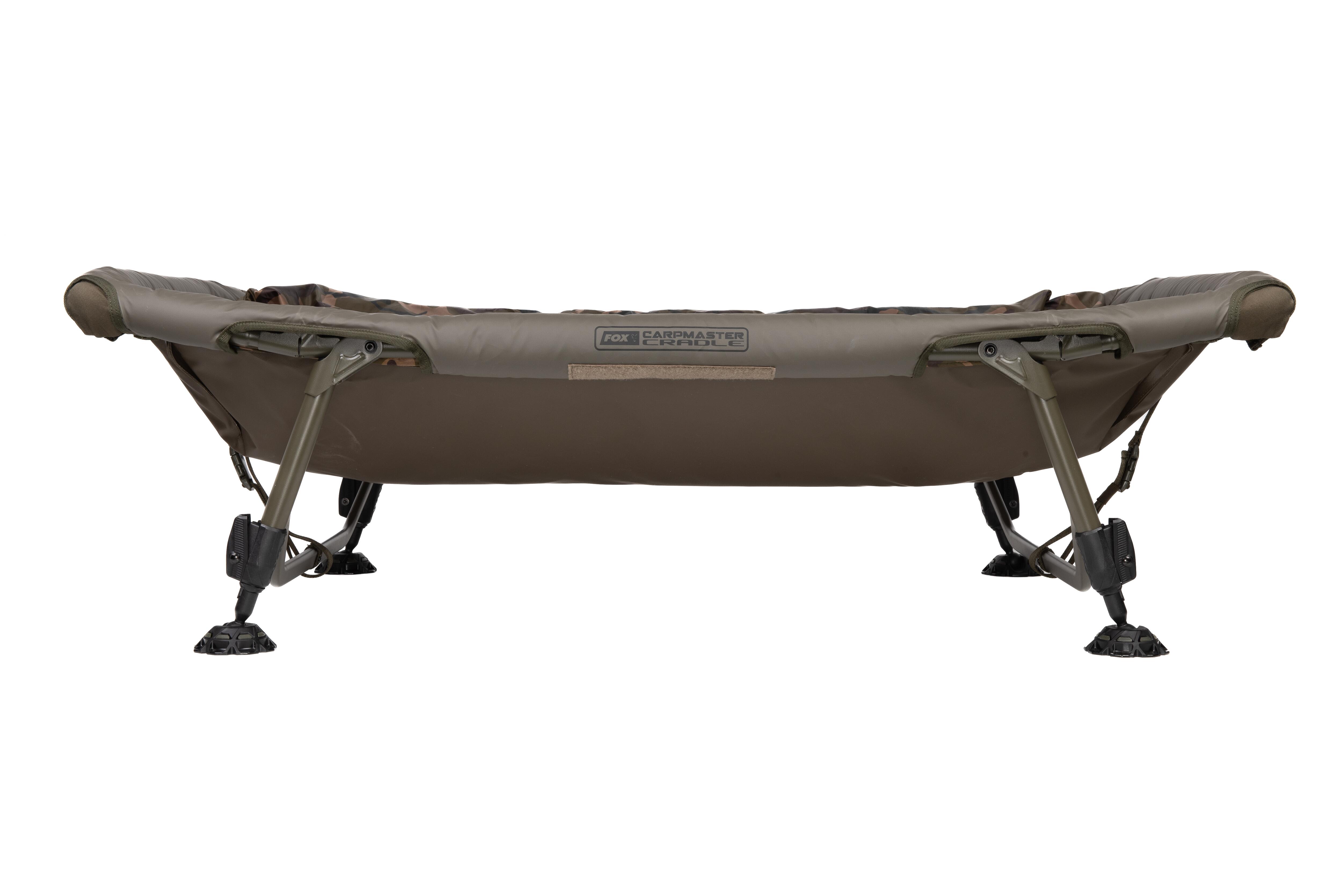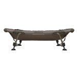 Kołyska z solidną ramą, wyposażona w cztery regulowane nogi ze sprężynami oraz obrotowe, szerokie stopki typu „mud feet”, które zapewniają stabilność na miękkim i nierównym podłożu. Obrzeże ramy zostało wyściełane miękkim materiałem, zwiększając bezpieczeństwo ryby. Strefa podparcia jest zawieszona nad ziemią i nie ma kontaktu z elementami konstrukcyjnymi, co minimalizuje ryzyko urazów. Całość wykonano w technologii zgrzewanej, eliminując możliwość przedostawania się wody do wnętrza maty. Powierzchnia podparcia nie posiada otworów drenażowych, dzięki czemu woda pozostaje w macie, zapewniając optymalną pielęgnację ryby. Model wyposażono w elastyczną, wodoodporną osłonę w kamuflażu Fox, która zabezpiecza rybę podczas użytkowania. W komplecie znajduje się zapinana na zamek torba transportowa z poliestru. Wysokość ramy wynosi 30 cm i może zostać zwiększona o dodatkowe 9 cm w celu wypoziomowania na nierównym terenie.