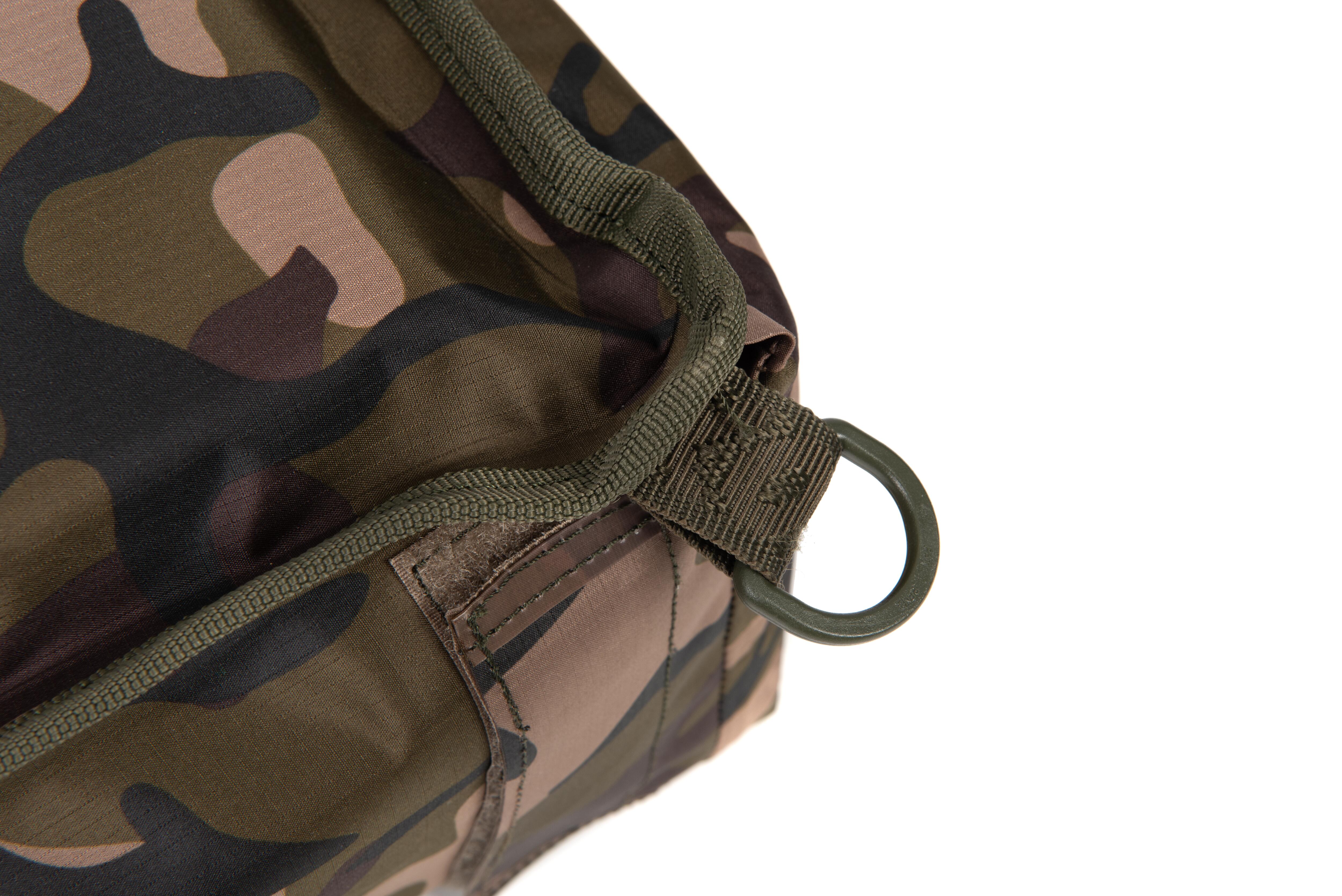 Owalna konstrukcja z pianki o dużej gęstości gwarantuje maksymalny poziom ochrony. Materiał Fox Camo 75D TPU jest jednocześnie lekki i bardzo wytrzymały. Zgrzewana konstrukcja skutecznie zapobiega przedostawaniu się wody do wnętrza. Zawór umieszczony na spodzie umożliwia łatwe dopompowanie lub wypuszczenie powietrza. Usztywnione, miękko wyściełane ściany można rozłożyć całkowicie na płasko. Punkty do przypięcia śledzi zapewniają stabilne ustawienie. W komplecie znajdują się dwa karabińczyki do zabezpieczenia produktu po złożeniu na pół.