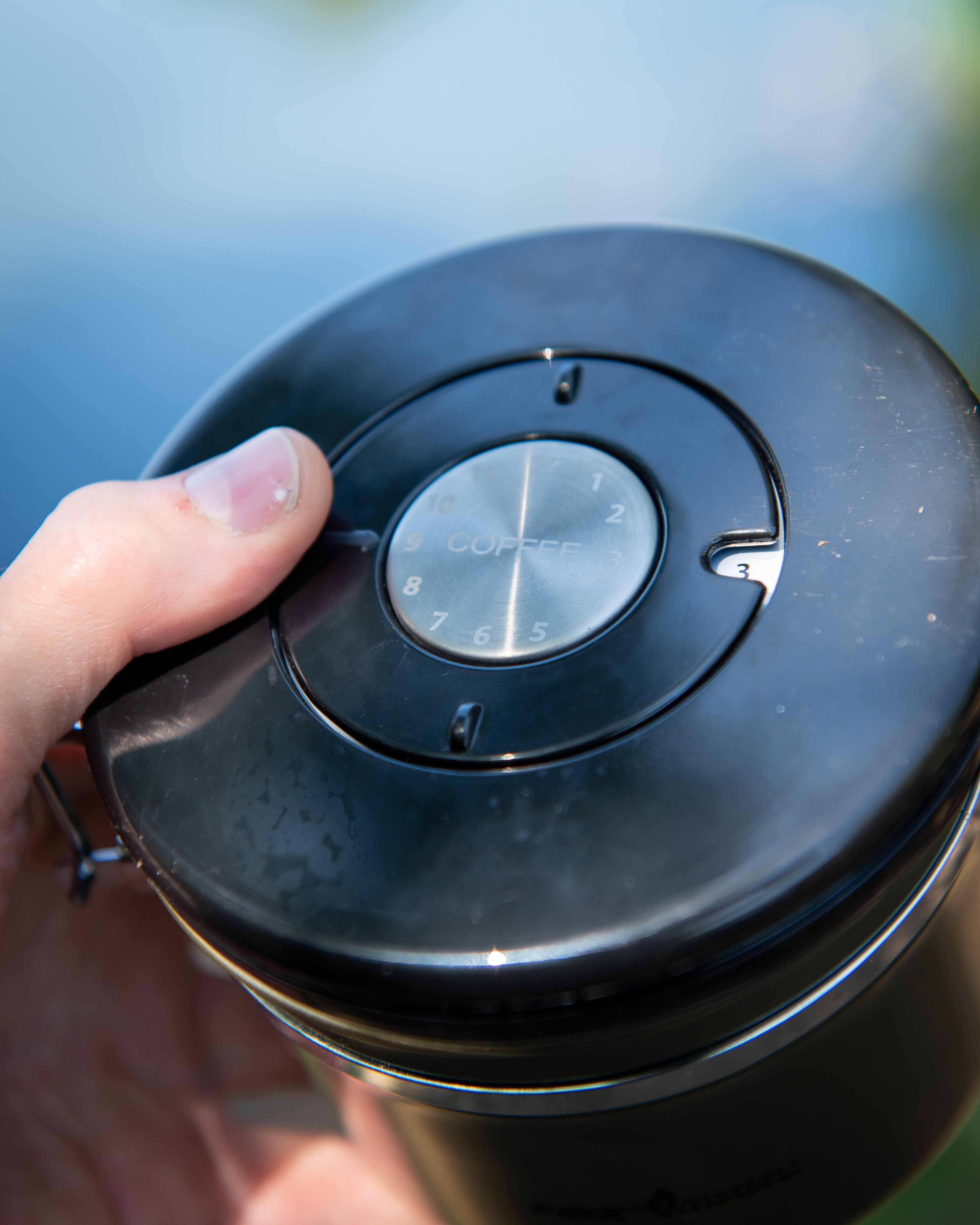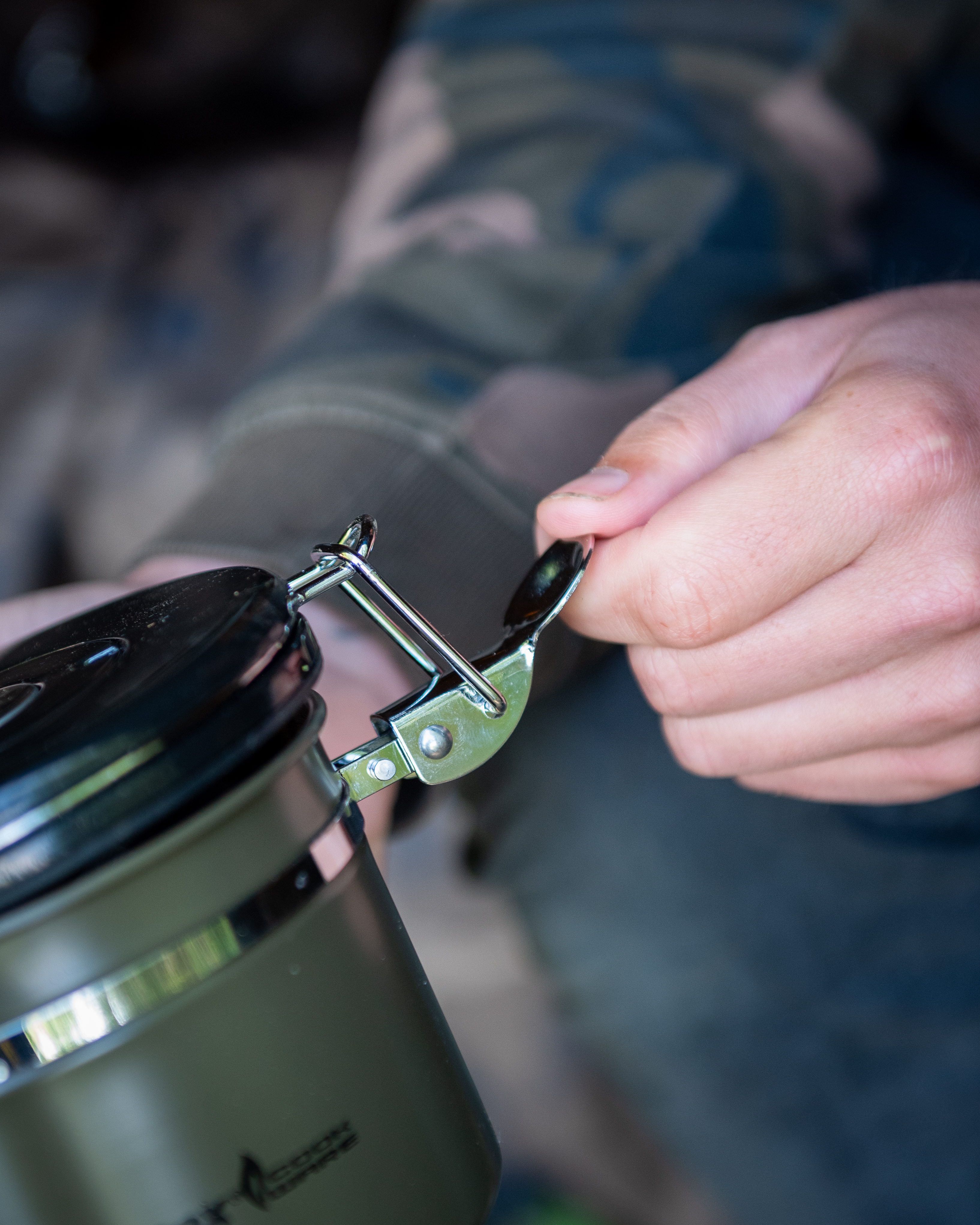 Wyposażony w zintegrowany zawór „keep fresh”, który uwalnia nadmiar gazów, a także datownik z pokrętłem, dzięki któremu zawsze wiesz, kiedy produkt został wsypany. Matowe, oliwkowe wykończenie nadaje mu elegancki i nowoczesny wygląd.