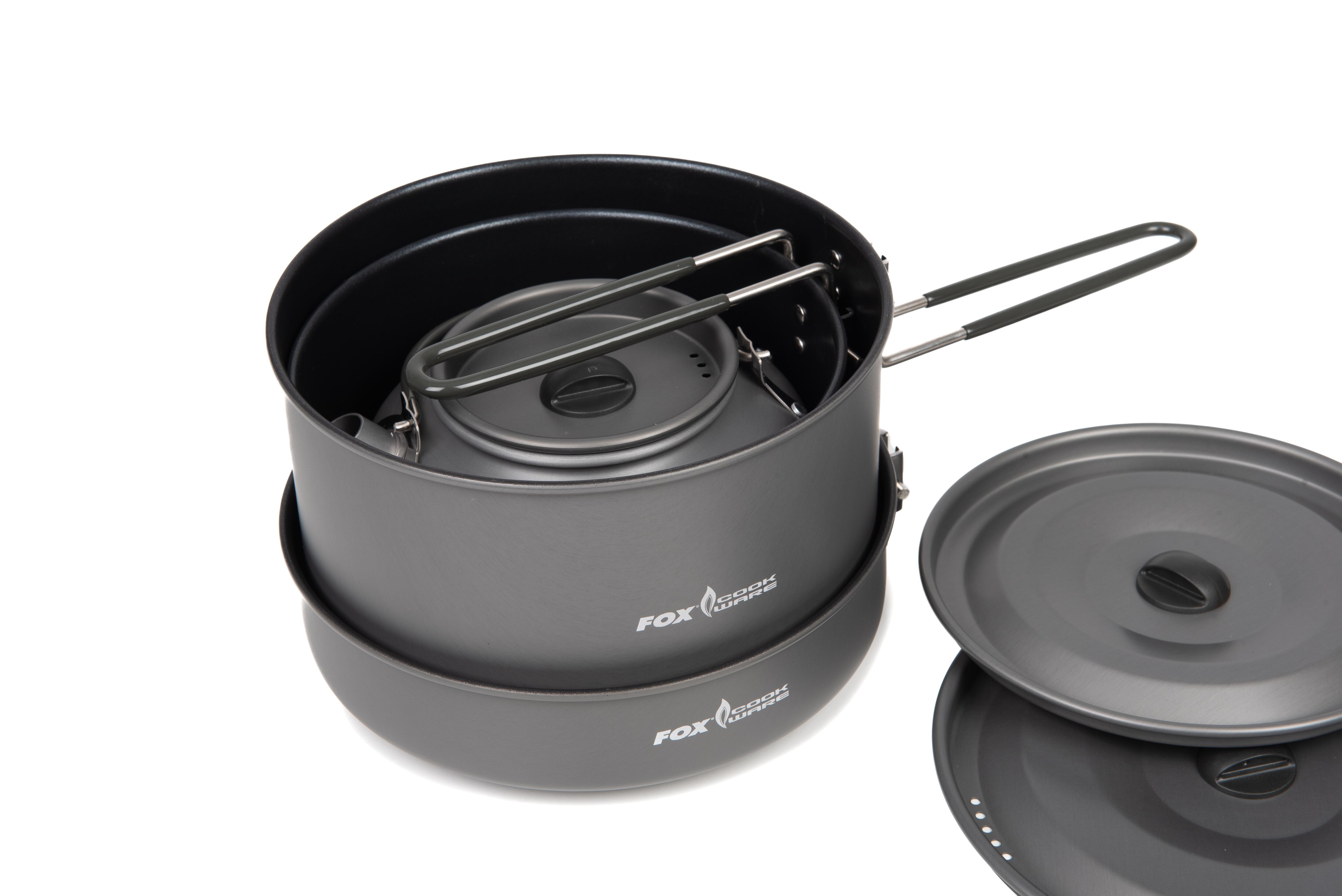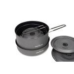 Zestaw kuchenny Large 4-częściowy to idealne rozwiązanie dla wędkarzy, którzy lubią gotować nad wodą. Zawiera wszystko, co niezbędne: czajnik z technologią Heat Transfer o pojemności 0,9 l, średni garnek jak w zestawie 3-częściowym oraz dodatkowo dużą patelnię i duży garnek, dzięki czemu przygotujesz pełne posiłki bez kompromisów.