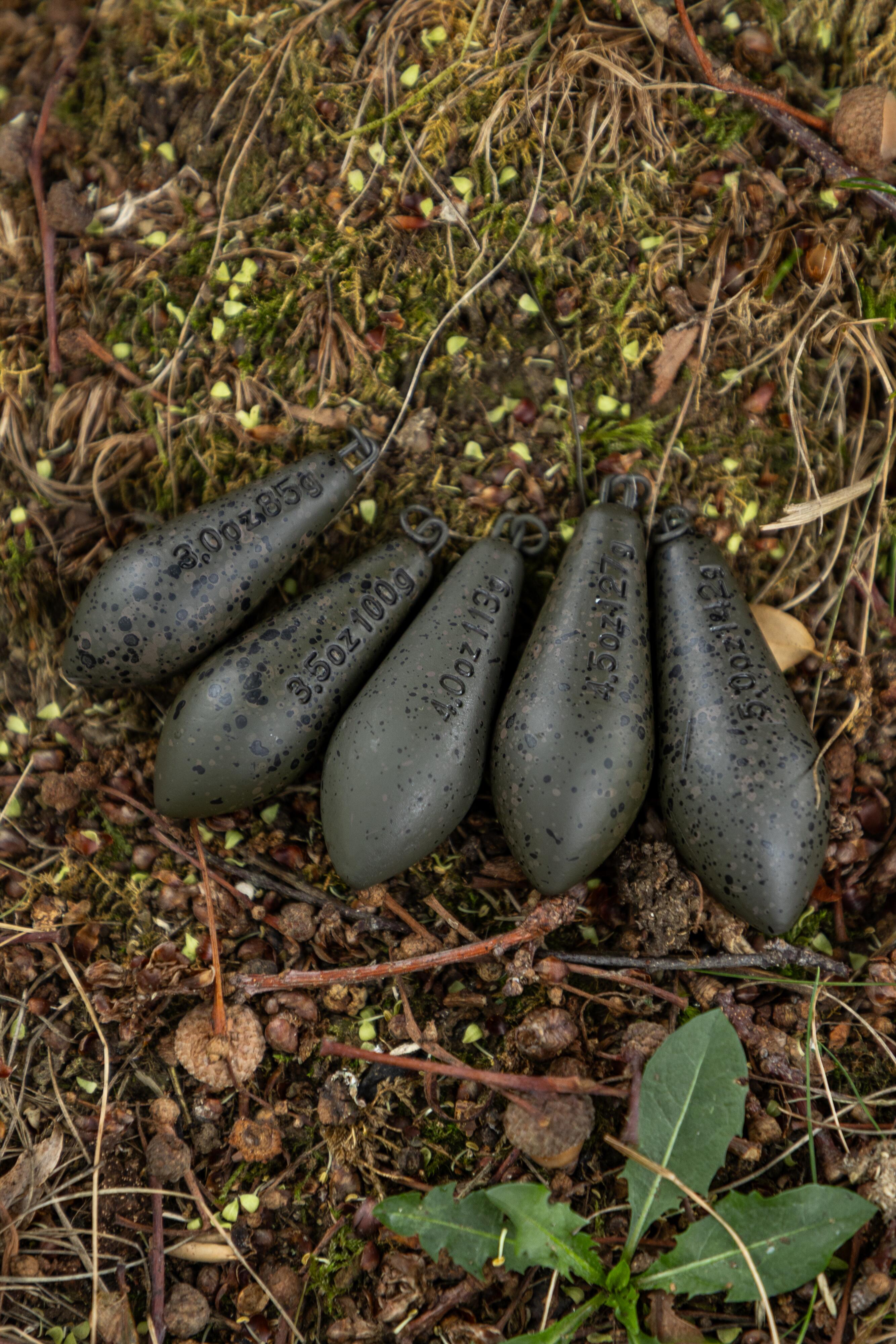 Całość wykończono matową, antyrefleksyjną powłoką w kamuflażu, dzięki której ciężarek pozostaje niewidoczny na dnie i nie płoszy ostrożnych ryb.