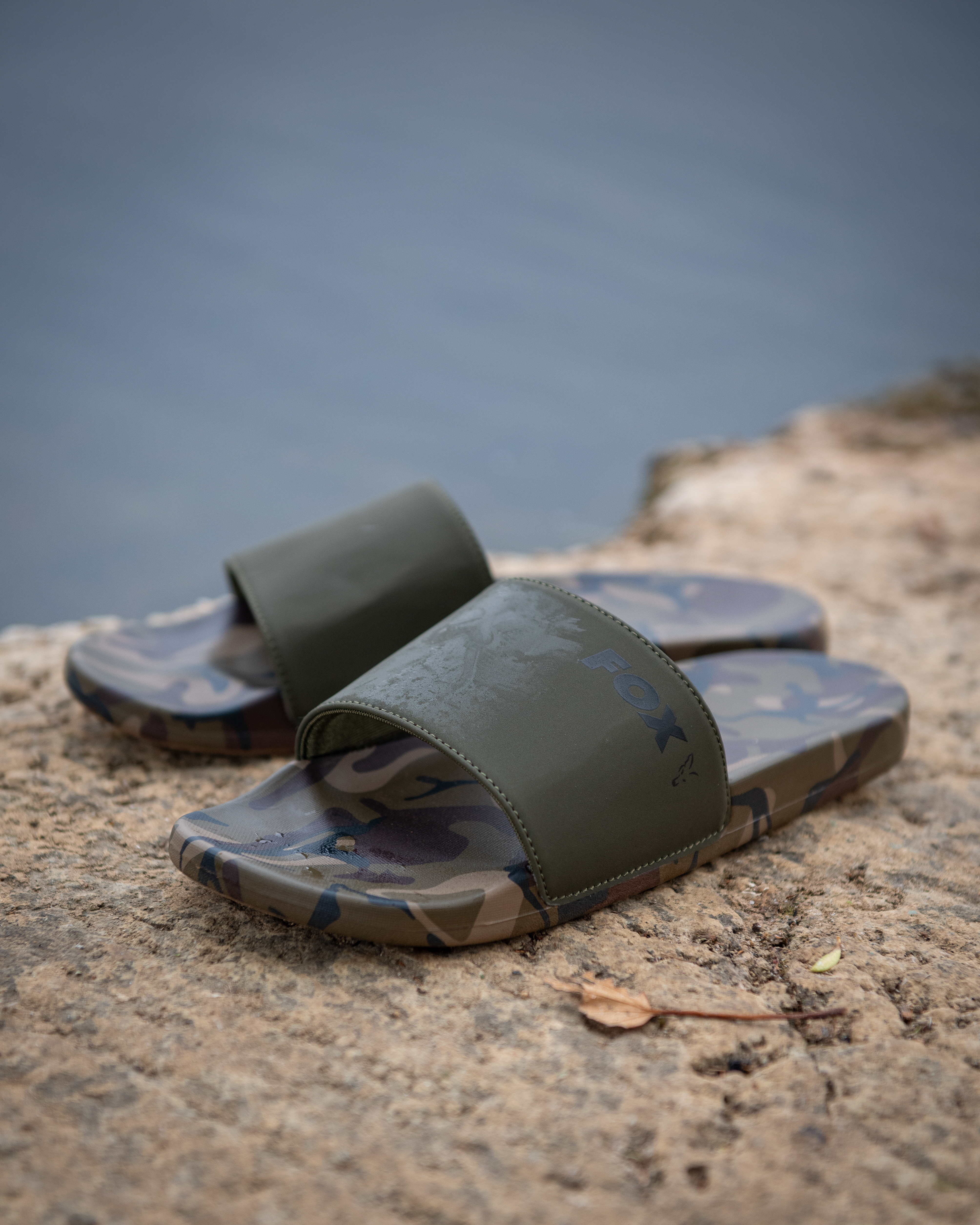 Stylowe klapki w kolorze khaki z charakterystycznym wzorem camo Fox. Idealne na lato, do użytku nad wodą lub na co dzień. Wykonane z lekkich, syntetycznych materiałów, które zapewniają wygodę, trwałość i szybkie schnięcie.
