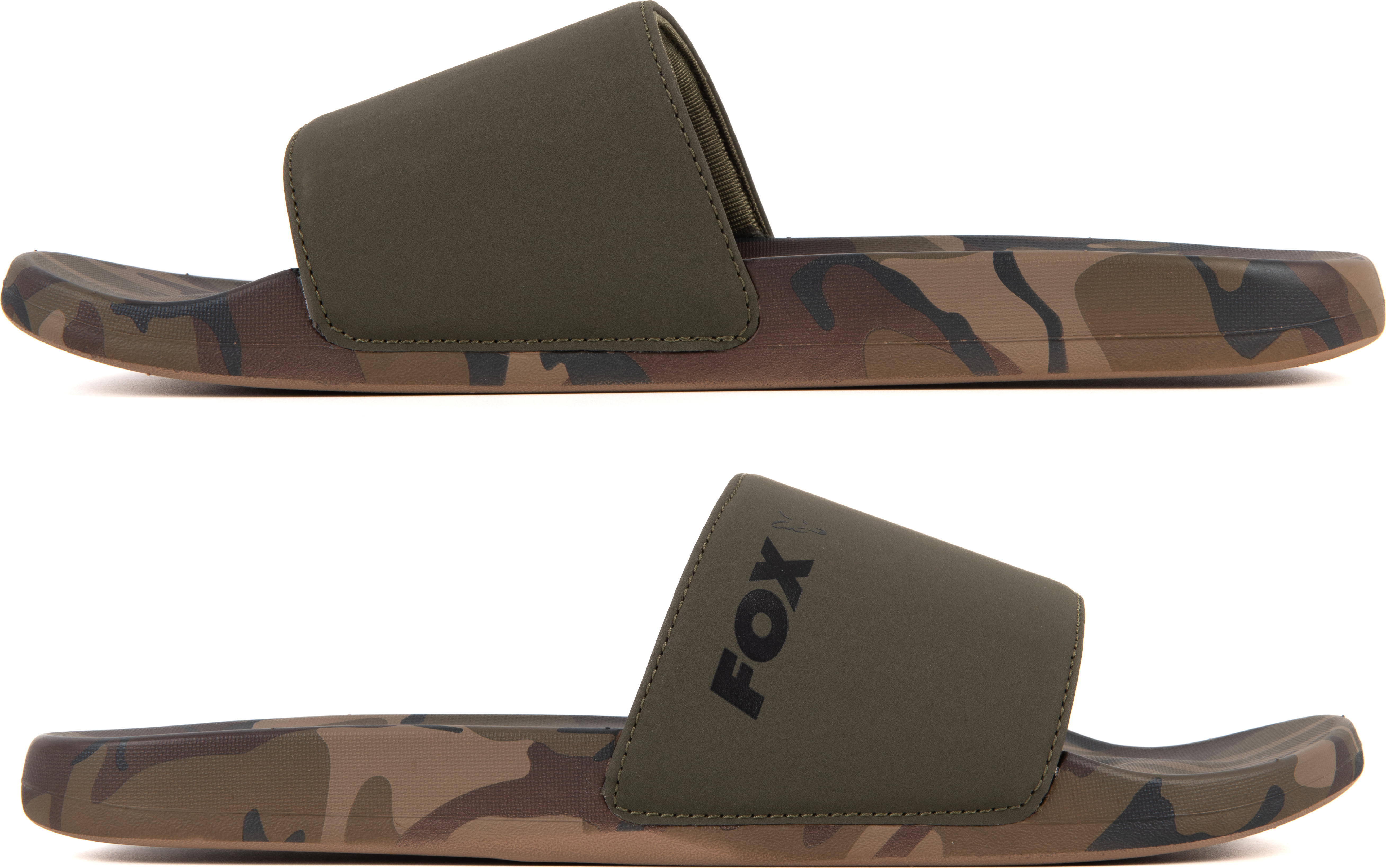 Stylowe klapki w kolorze khaki z charakterystycznym wzorem camo Fox. Idealne na lato, do użytku nad wodą lub na co dzień. Wykonane z lekkich, syntetycznych materiałów, które zapewniają wygodę, trwałość i szybkie schnięcie.