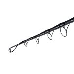 Minimalistyczny system przelotek Slik nadaje wędce nowoczesny wygląd i jednocześnie redukuje opory podczas wyrzutów, co przekłada się na większe odległości. Matowe, czarne wykończenie nadaje elegancji i profesjonalnego charakteru, a pełna rękojeść wykończona japońską otuliną Shrink Wrap zapewnia pewny chwyt oraz wysoki komfort użytkowania w każdych warunkach.