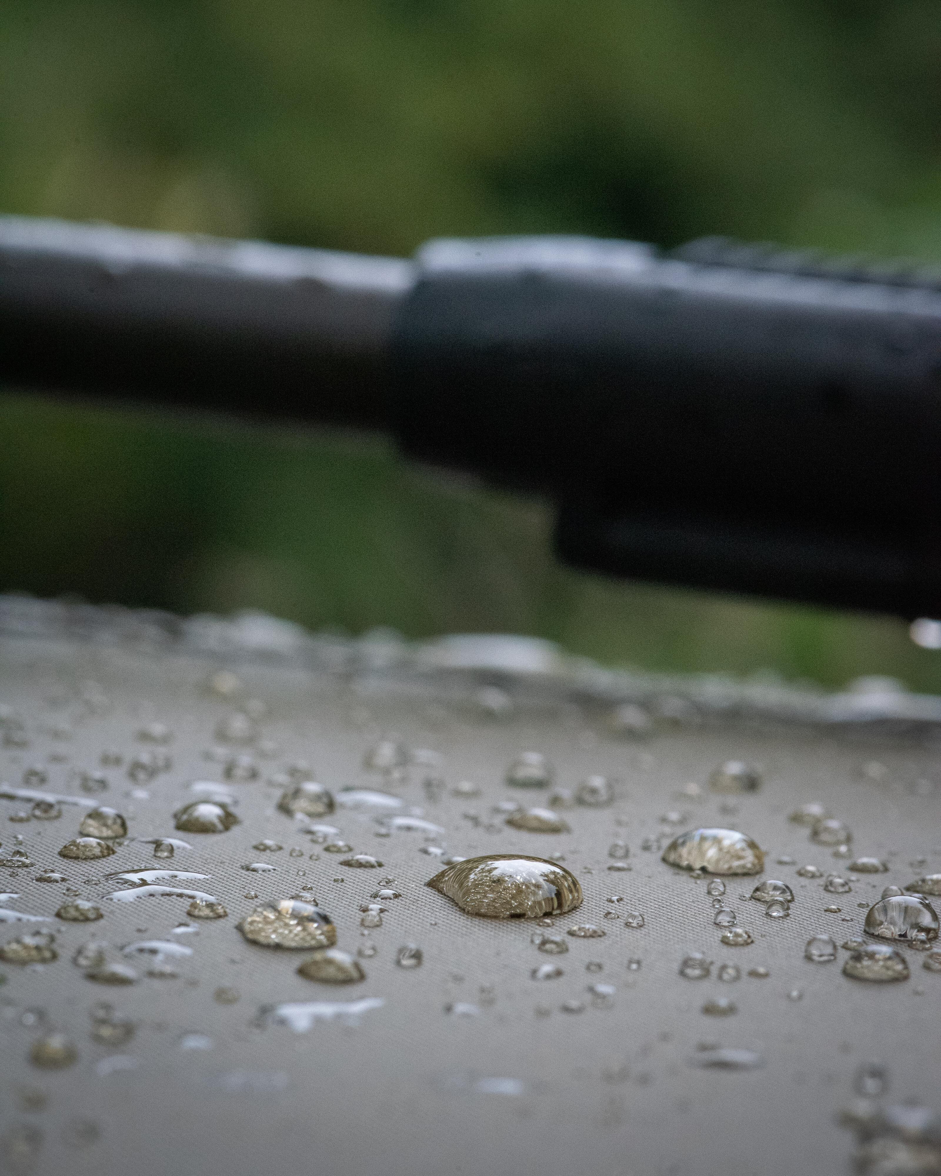 Wykonany z wytrzymałego materiału o wodoodporności 8000 mm, z ciemnym laminatem ograniczającym przenikanie światła i poprawiającym komfort termiczny latem.