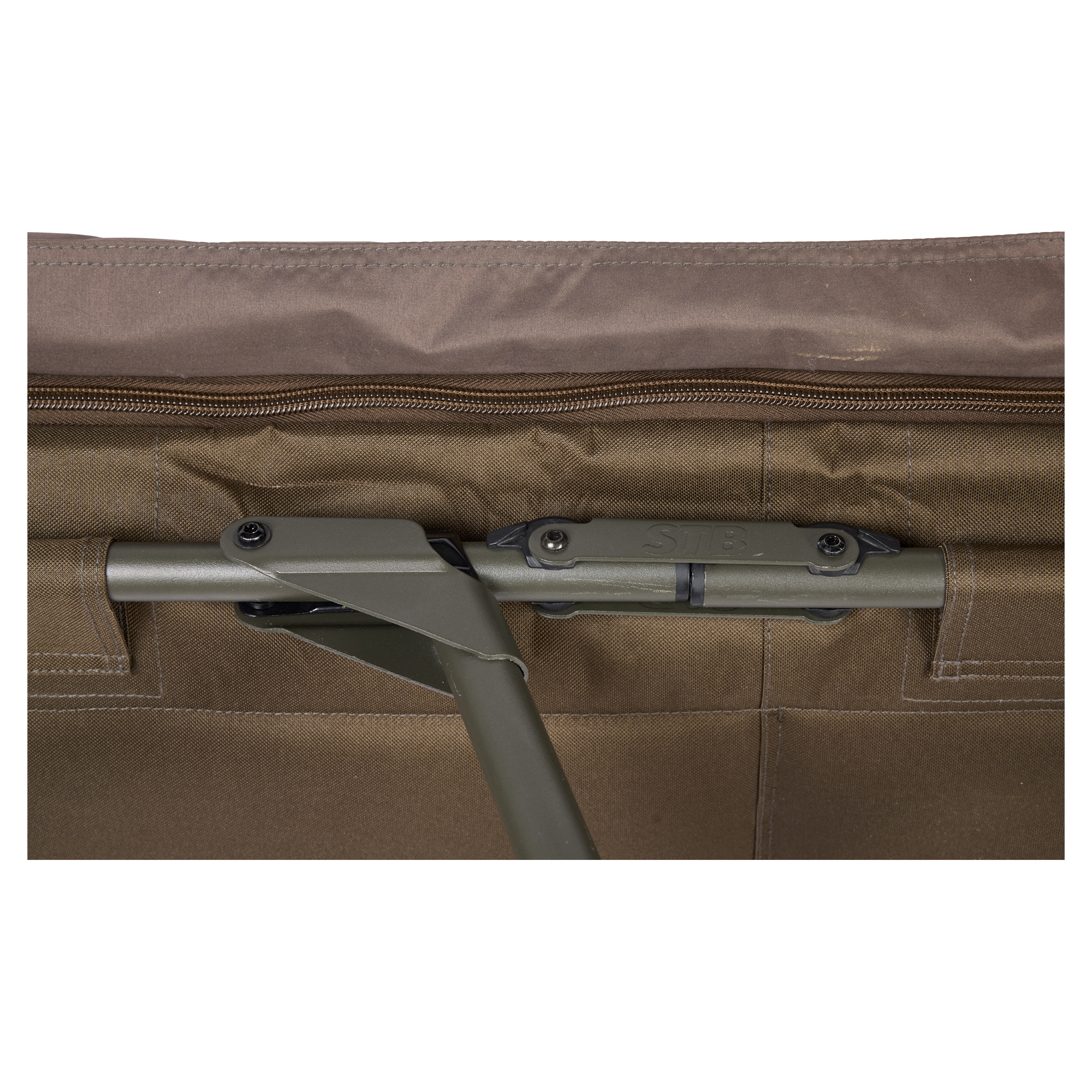 System do spania STB 3/5 SEASON to połączenie łóżka ze śpiworem. Wnętrze z mikropolaru utrzyma Cię w cieple nawet na najzimniejszej zasiadce. Zapewnia najwyższy komfort na brzegu. Regulowane oparcie i rozmiary z siatkami zapinanymi na zamek, na wszystkie Twoje akcesoriach.Szczegóły:- Ultra solidna i lekka konstrukcja- Izolowany i gruby materac dla komfortu- Powłoka typu 'Peach skin' na wysokiej jakości powierzchni piankowej- Mechanizm szybkiego składania- 8 nóg dla zapewnienia stabilności- W pełni regulowane nogi ze stopkami na błotnisty grunt