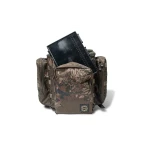 Plecak stoi stabilnie nawet wtedy, gdy jest pusty, a zamek otwierany z trzech stron gwarantuje wygodny dostęp do całej zawartości. W klapie znajduje się zintegrowana tacka robocza z EVA, idealna do odłożenia telefonu, centralek, gotowych zestawów czy przynęt – zawsze pod ręką, nigdy na ziemi.