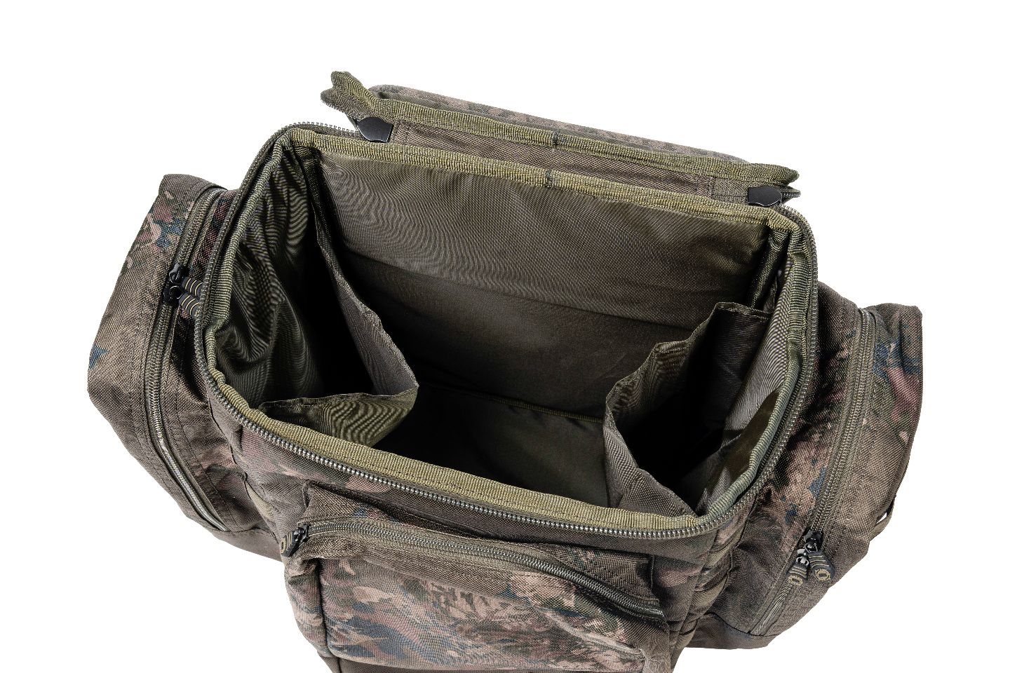 Plecak zachowuje stabilność nawet wtedy, gdy jest pusty, a górny zamek otwierany z trzech stron zapewnia szybki i wygodny dostęp do całej zawartości. We wnętrzu znajdują się podwójne kieszenie organizacyjne, natomiast w klapie umieszczono zintegrowaną tackę roboczą z EVA – idealną do odkładania telefonu, centralek, gotowych zestawów czy przynęt. Wszystko jest pod ręką i z dala od podłoża.