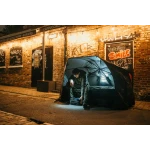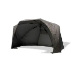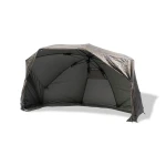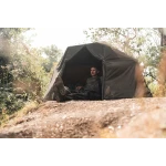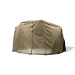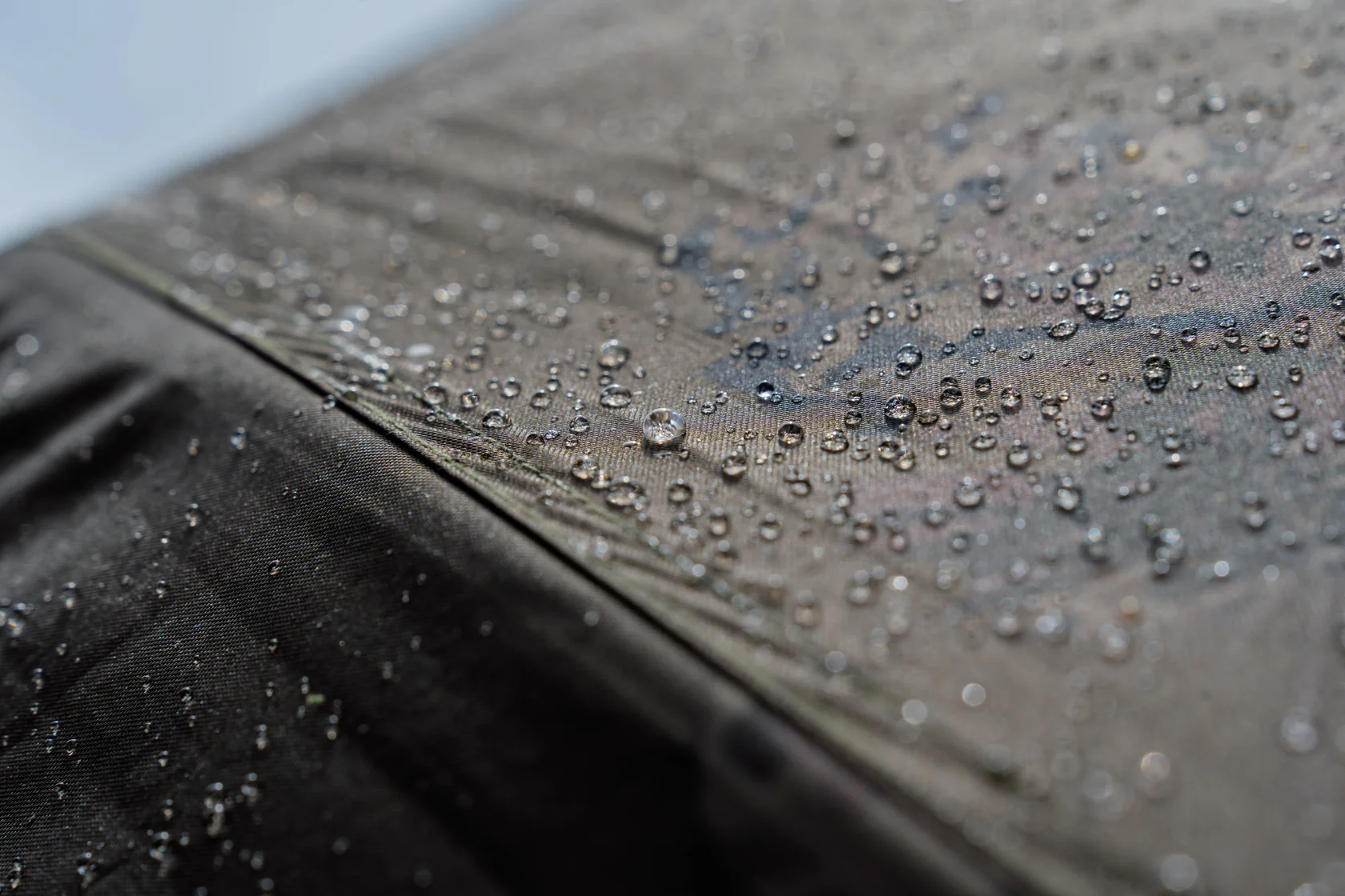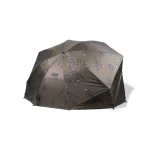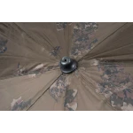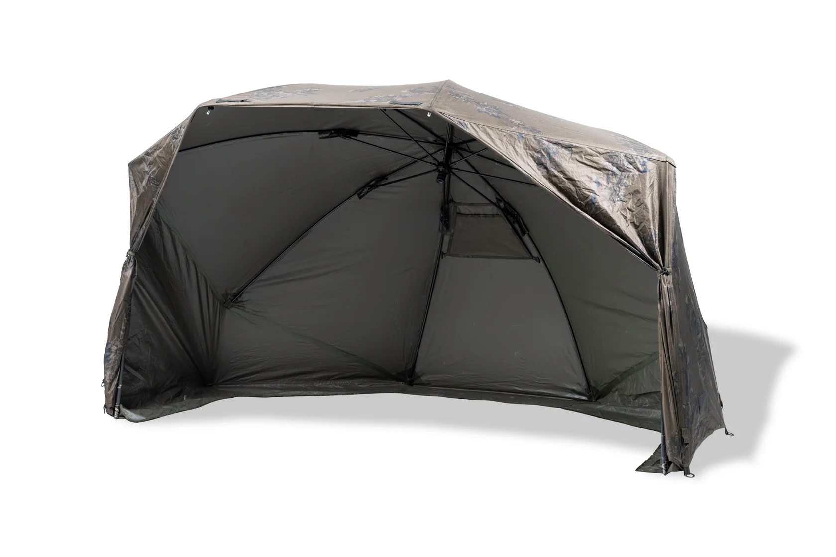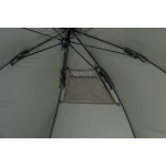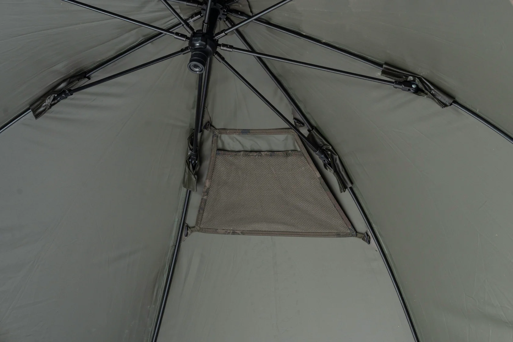 Brolly wykorzystuje ekstremalnie wytrzymały materiał Aquasense® 150 × 150 o wodoodporności 10 000 mm oraz żebra z 8-milimetrowego włókna szklanego, łączące odporność z elastycznością. Konstrukcja została wzmocniona poprzez wyeliminowanie słabych punktów — zamiast standardowej osłony szczytowej zastosowano stalowy drut, który zapobiega powstawaniu naprężeń i uszkodzeń typowych dla tańszych schronień.