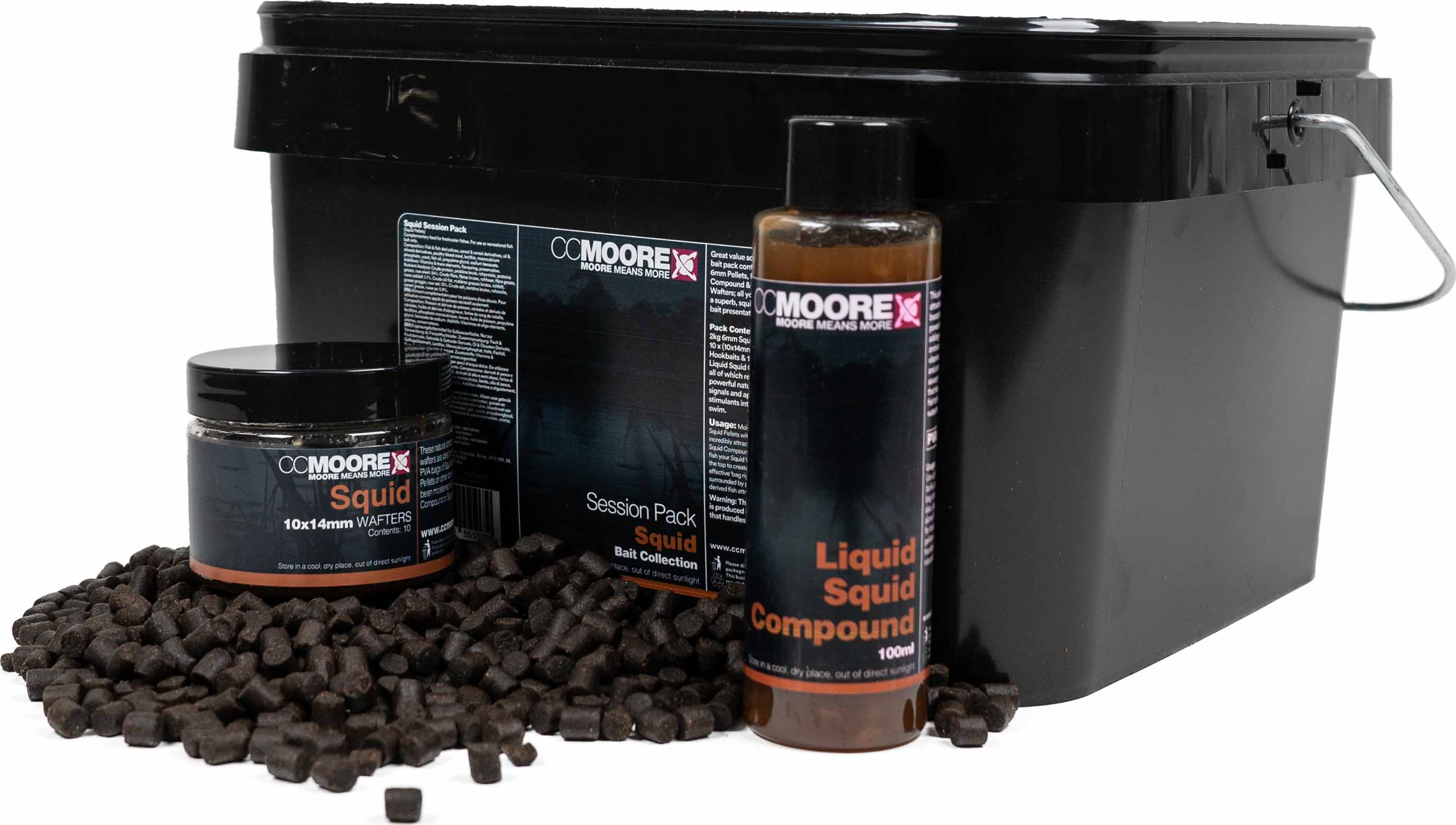 Ten bardzo opłacalny zestaw zawiera skuteczne połączenie przynęt: naturalny pellet zanętowy bogaty w atraktory, dumbellsy wafters nasączone płynami oraz intensywny, naturalny liquid na bazie mięsa kałamarnicy. To komplet idealnych narzędzi do budowy prezentacji typu spod mix, woreczek PVA lub luźne nęcenie, które w wodzie uwalniają silne, naturalne bodźce pokarmowe.