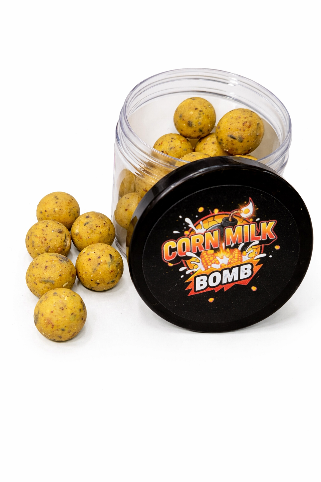 Corn Milk Bomb to kulki haczykowe stworzone na bazie połączenia orzecha, kukurydzy i mleka, które razem tworzą wyjątkowo skuteczną, słodką mieszankę o intensywnym zapachu trzech smaków. Ten aromat szybko rozchodzi się w wodzie i skutecznie wabi karpie nawet na trudnych, przełowionych łowiskach.
