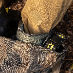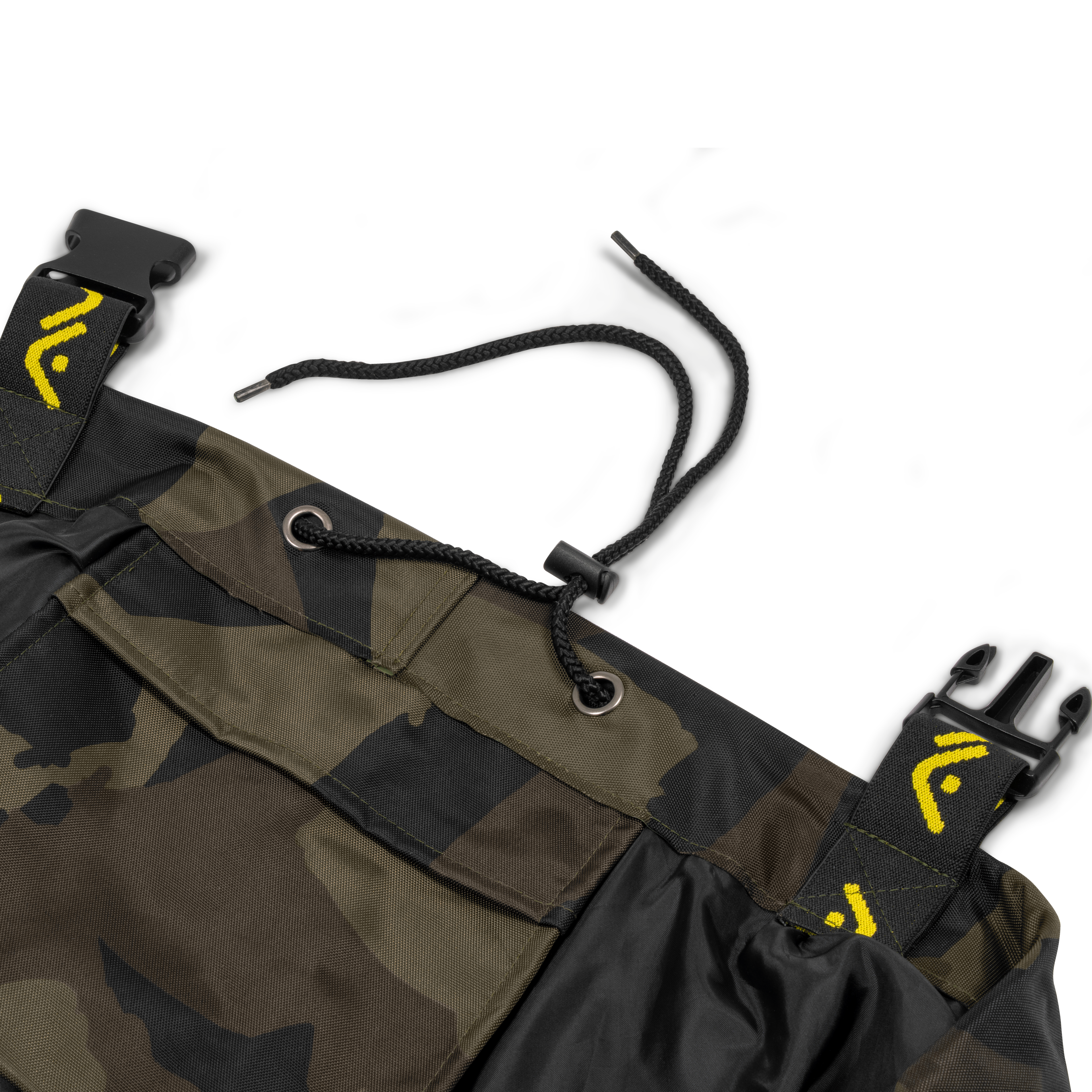 Wykonane z lekkiego, ale bardzo wytrzymałego materiału 420D Distortion Dark-Camo, z całkowicie klejonymi szwami zapewniającymi pełną ochronę przed wodą.