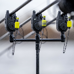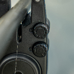 Miękkie boczne przyciski sterują zasilaniem, ustawieniami LED i tonem dźwięku, a dwa pokrętła regulacyjne umożliwiają precyzyjne ustawienie głośności i czułości. Głębokie „uszy” z gumowymi wkładkami chroniącymi wędkę utrzymują ją stabilnie i bezpiecznie w każdych warunkach. Sztywny gwint 3/8” bez efektu skręcania z pierścieniem blokującym i gumową podkładką zapewnia stabilny montaż bez obracania. Gniazdo Power-Out 2,5 mm z uszczelniającą zaślepką umożliwia podłączenie podświetlanych swingerów lub bobbinów.