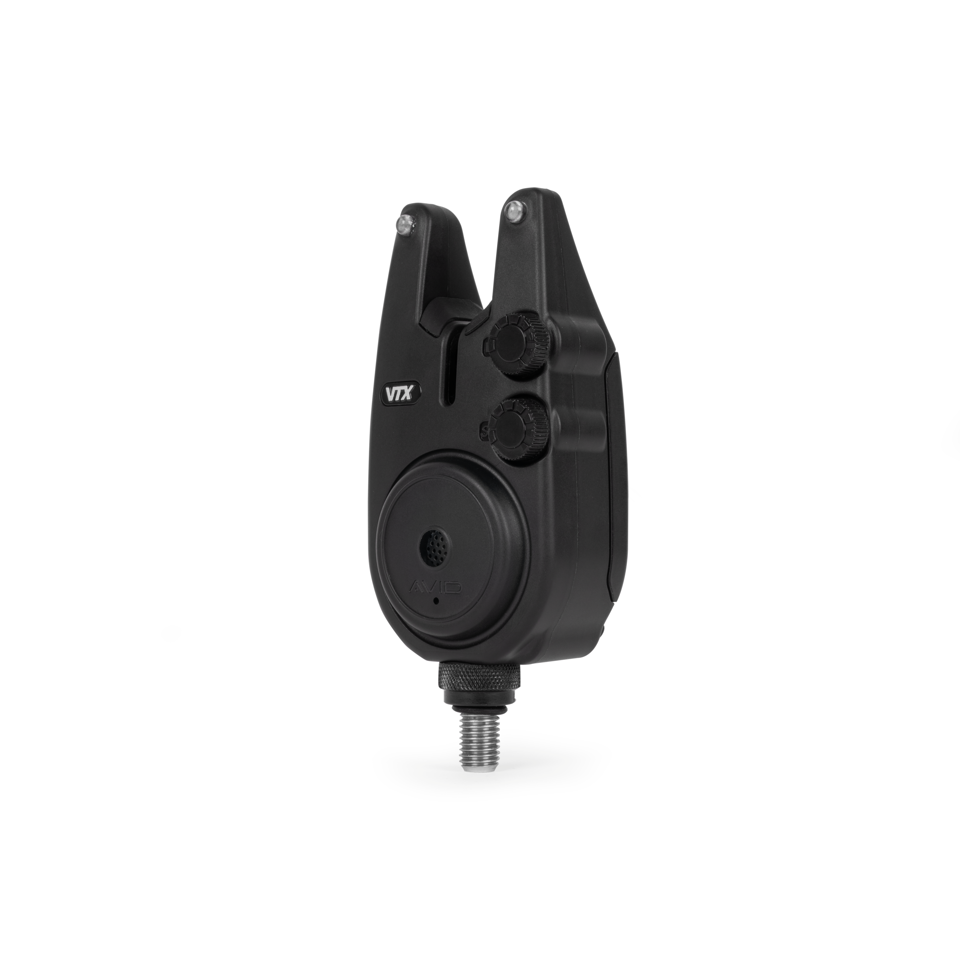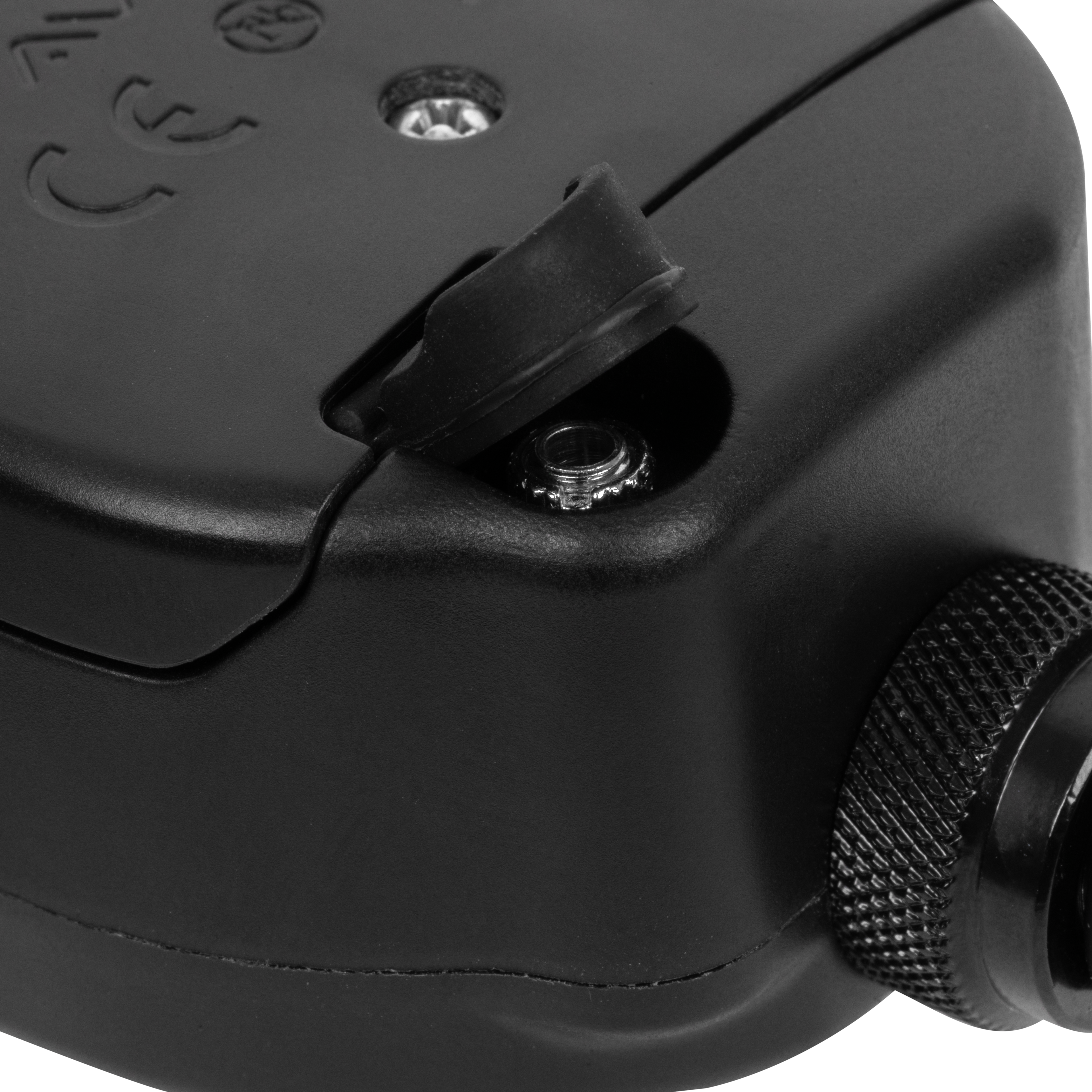 Miękkie boczne przyciski sterują zasilaniem, ustawieniami LED i tonem dźwięku, a dwa pokrętła regulacyjne pozwalają precyzyjnie ustawić głośność i czułość. Głębokie „uszy” z gumowymi wkładkami przyjaznymi dla wędki utrzymują ją stabilnie i bezpiecznie w każdych warunkach. Sztywny gwint 3/8” bez efektu skręcania z pierścieniem blokującym i gumową podkładką zapewnia stabilny montaż bez obracania.