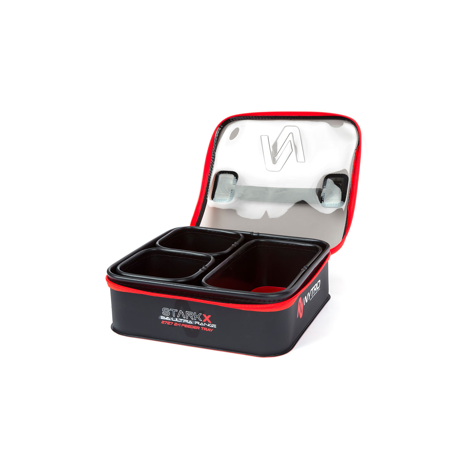 NYTRO STARKX 2+1 FEEDER TRAY Zestaw EVA Feeder Tray został zaprojektowany do przechowywania kompletu składającego sie z: 2 x 1212 i 1 x 2412 pojemników EVA. Idealny do krótkich sesji z użyciem niewielkiej ilości pelletu i zanęty. Służy do przechowywania koszyczków zanętowych, pelletów i drobnych akcesoriów. Przezroczysta pokrywa jest wyposażona w uchwyt z taśmy dla dodatkowej wytrzymałości.• Mieszany materiał EVA o grubości 1,5 mm i 1 mm• Łatwy w czyszczeniu• Precyzyjnie zgrzane ze sobą ścianki zapewniające wodoszczelność• Wytrzymałe zamki błyskawiczne• Przezroczysta pokrywa• Rozmiar podstawy: L27xW27xH9cmW zestawie pojemniki: 2 x model 1212 i 1 x model 2412 EVA Pojemniki na przynęty i akcesoriaDostępne są zapasowe pojemniki.• Mieszany materiał EVA o grubości 1,5 mm i 1 mm• Łatwy w czyszczeniu• Precyzyjnie zgrzane ze sobą ścianki zapewniające wodoszczelność• Wytrzymałe zamki błyskawiczne• Przezroczysta pokrywa• Rozmiar podstawy: L27xW27xH9cm